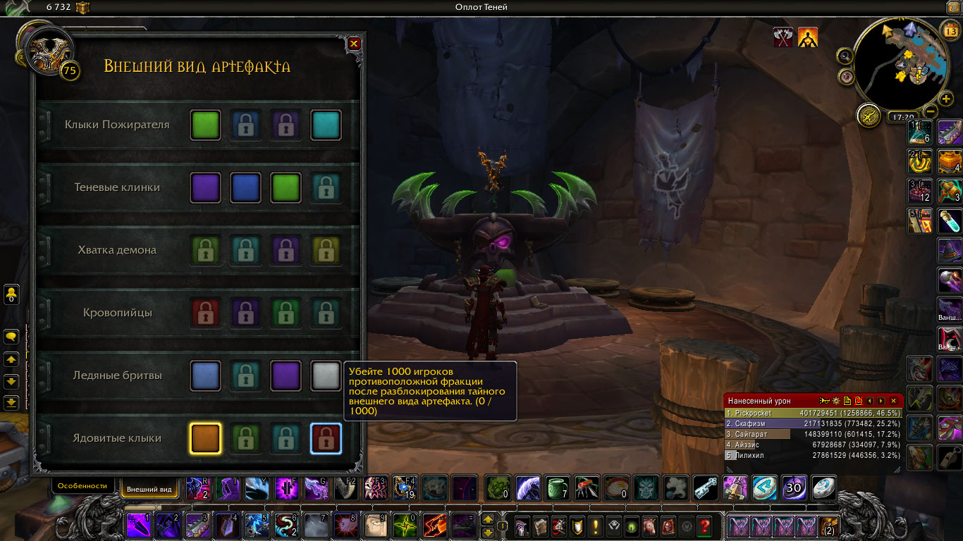 Здравствуйте. А вы сам итем выбивали https://ru.wowhead.com/item=139571 ? (Сам 1 облик работает после открытия облика башни магов, а что бы работали критерии нужно его получить) Выберите себя в цель и напишите .q s 43672 |