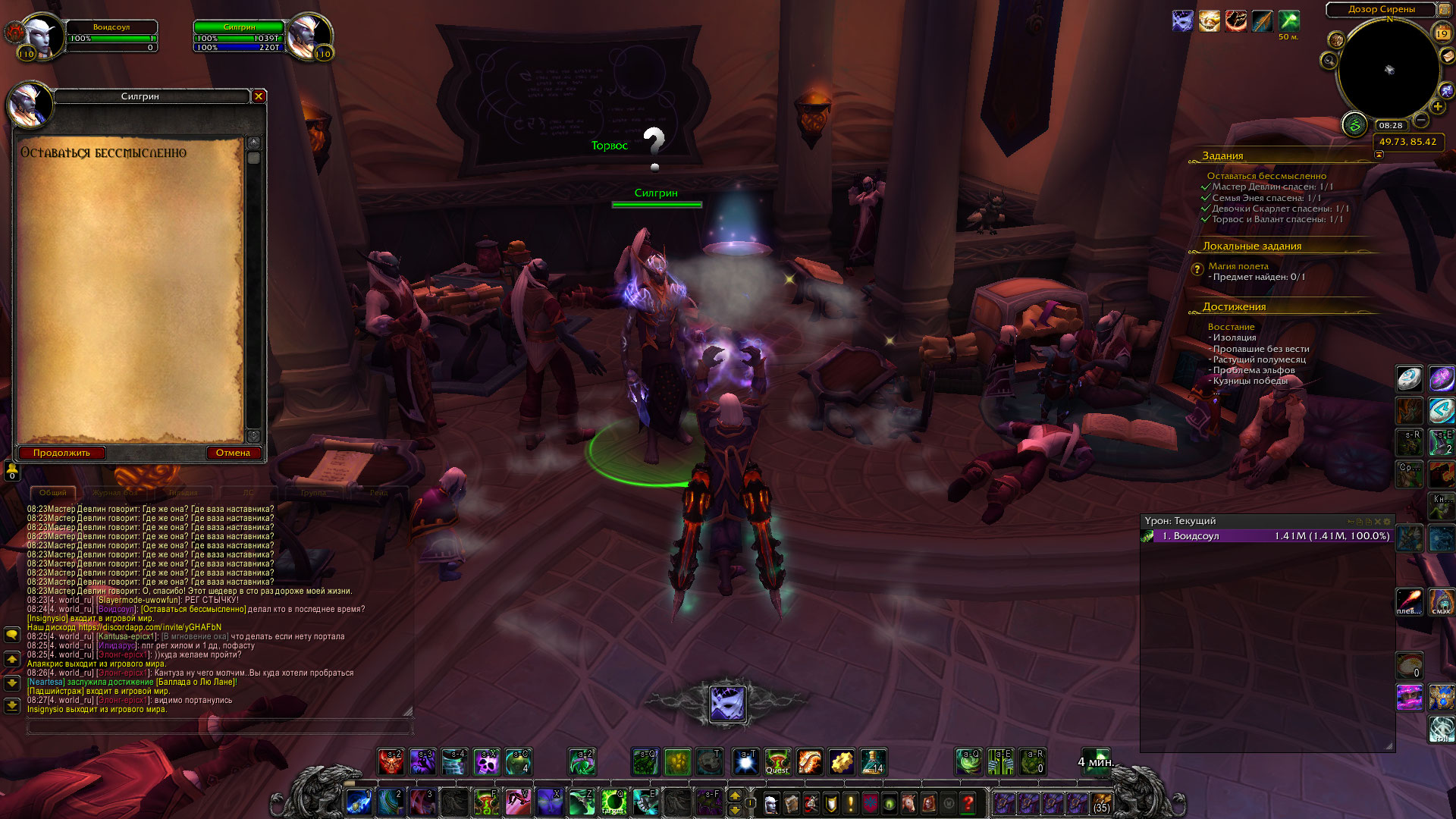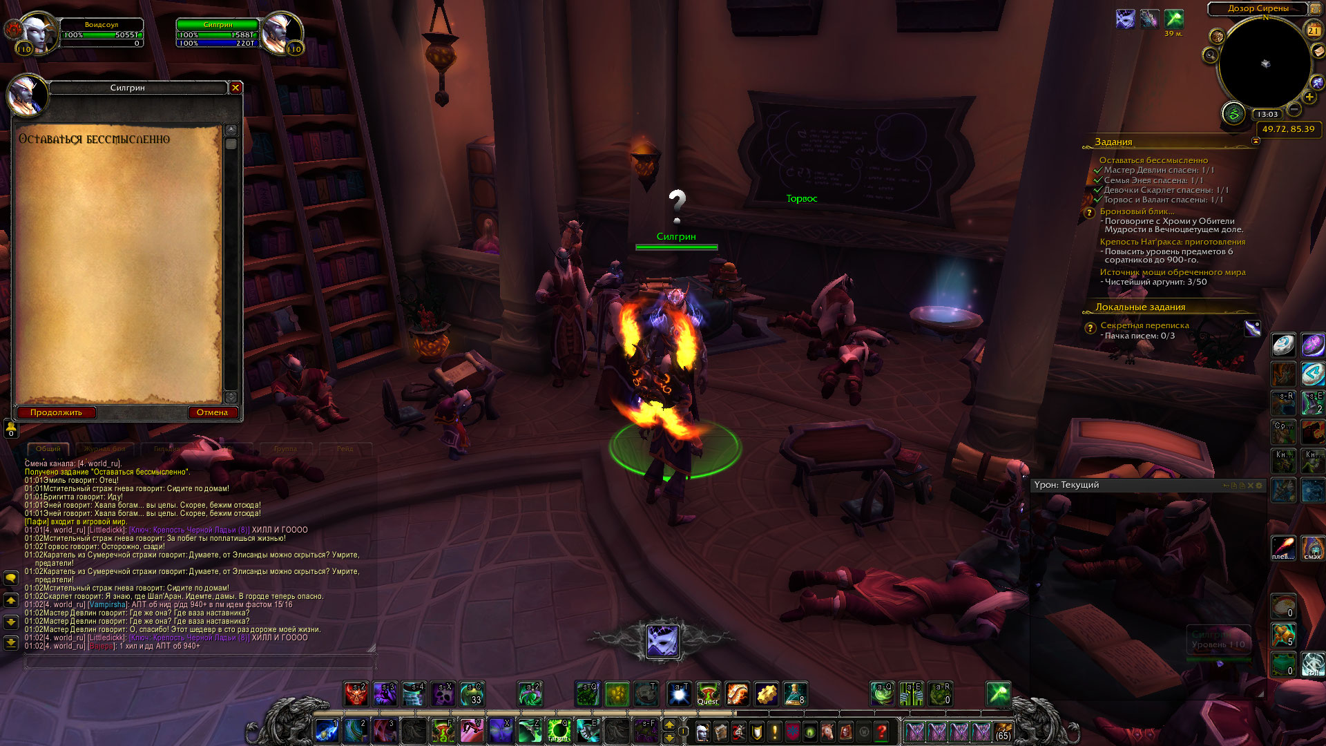 | Description | Столкнулся с проблемой невозможности сдачи квеста Силгрину. Условия квеста выполнены. Силгрин не заканчивает квест. | ||||