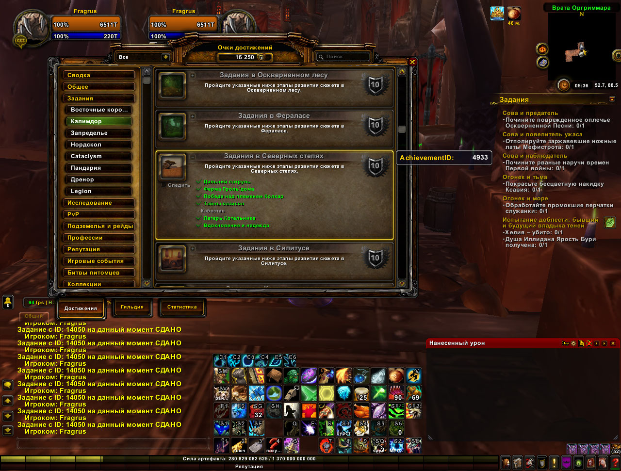 | Summary | 0012664: https://ru.wowhead.com/achievement=4933 и https://ru.wowhead.com/quest=14050 | ||||