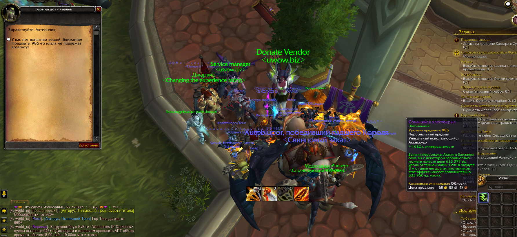| Description | Нельзя сдать по акции "День рождения сервера и Хэллоуин" донат вендору ранее купленный Хлестокрыл 985. | ||||