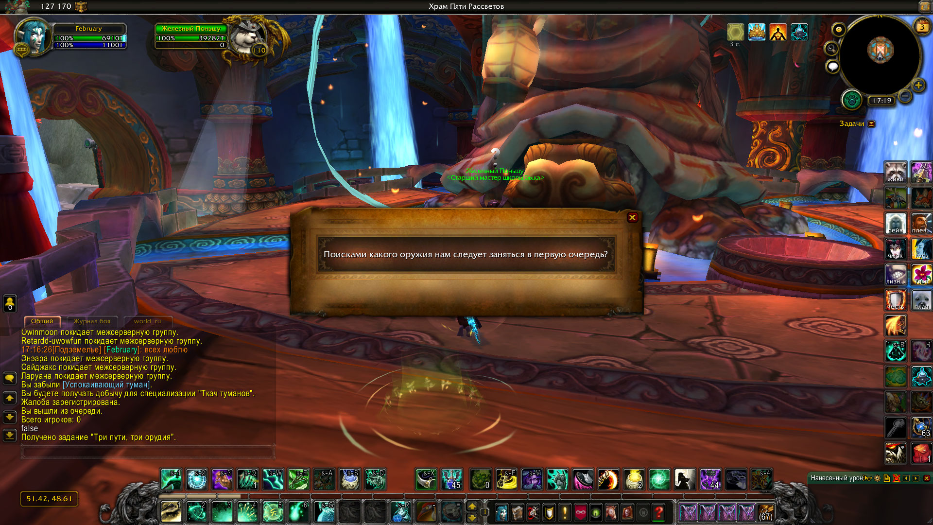 | Description | Моему монку достаточно много времени, чтобы я успела застать почти все баги, связанные с оплотом Дело в том, что квест https://ru.wowhead.com/quest=44424/три-пути-три-орудия появился ПОСЛЕ того, как я успела получить все три арта. Технически это ни на что не влияет, но висит тяжким грузом (и возможно не дает делать какие-нибудь другие квесты) Да и вообще у меня по-прежнему никаких квестов в оплоте монков толком нет, вечно все либо не появлялось, либо появлялось, ломалось и исчезало ) Вопрос заключается в том, можно ли автокомплитнуть этот квест? | ||||