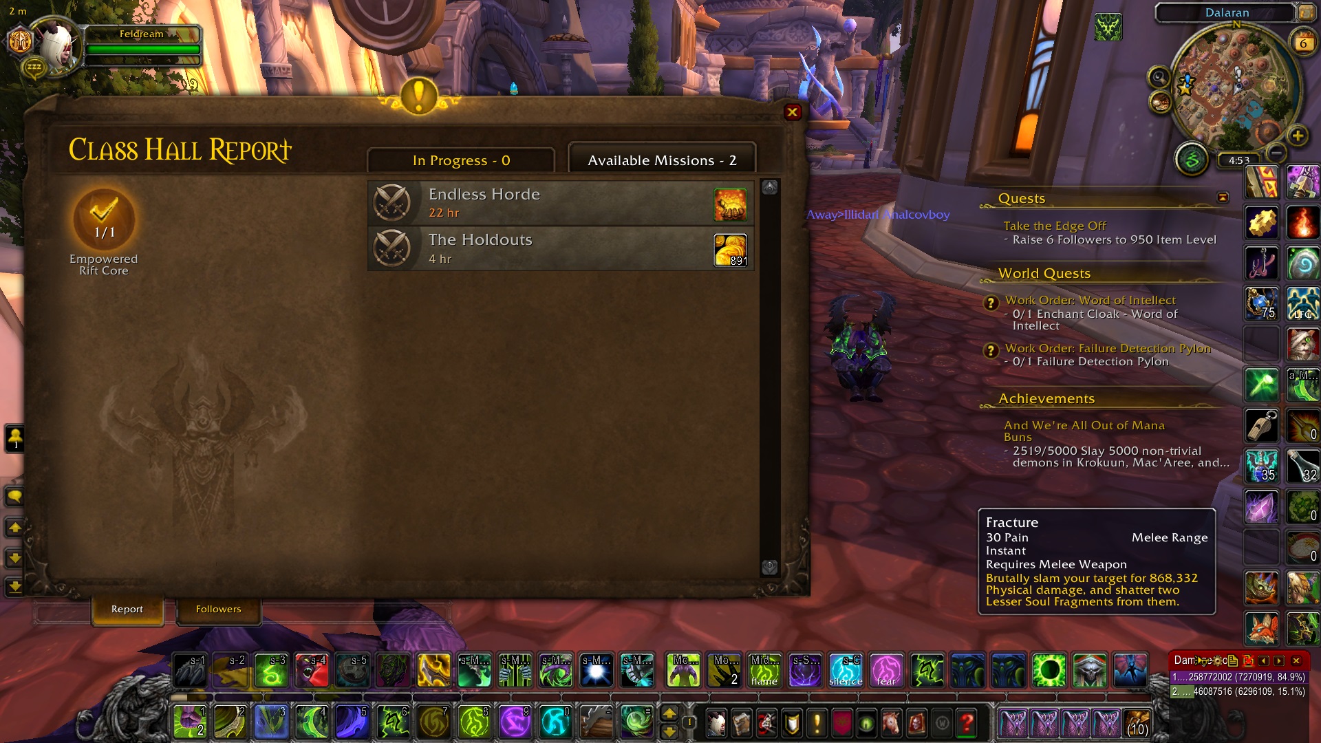 | 0012716 | Legion Core | Quests[Argus] / Задания[Аргус] | public | 2020-11-06 18:01 | 2020-11-08 21:21 |