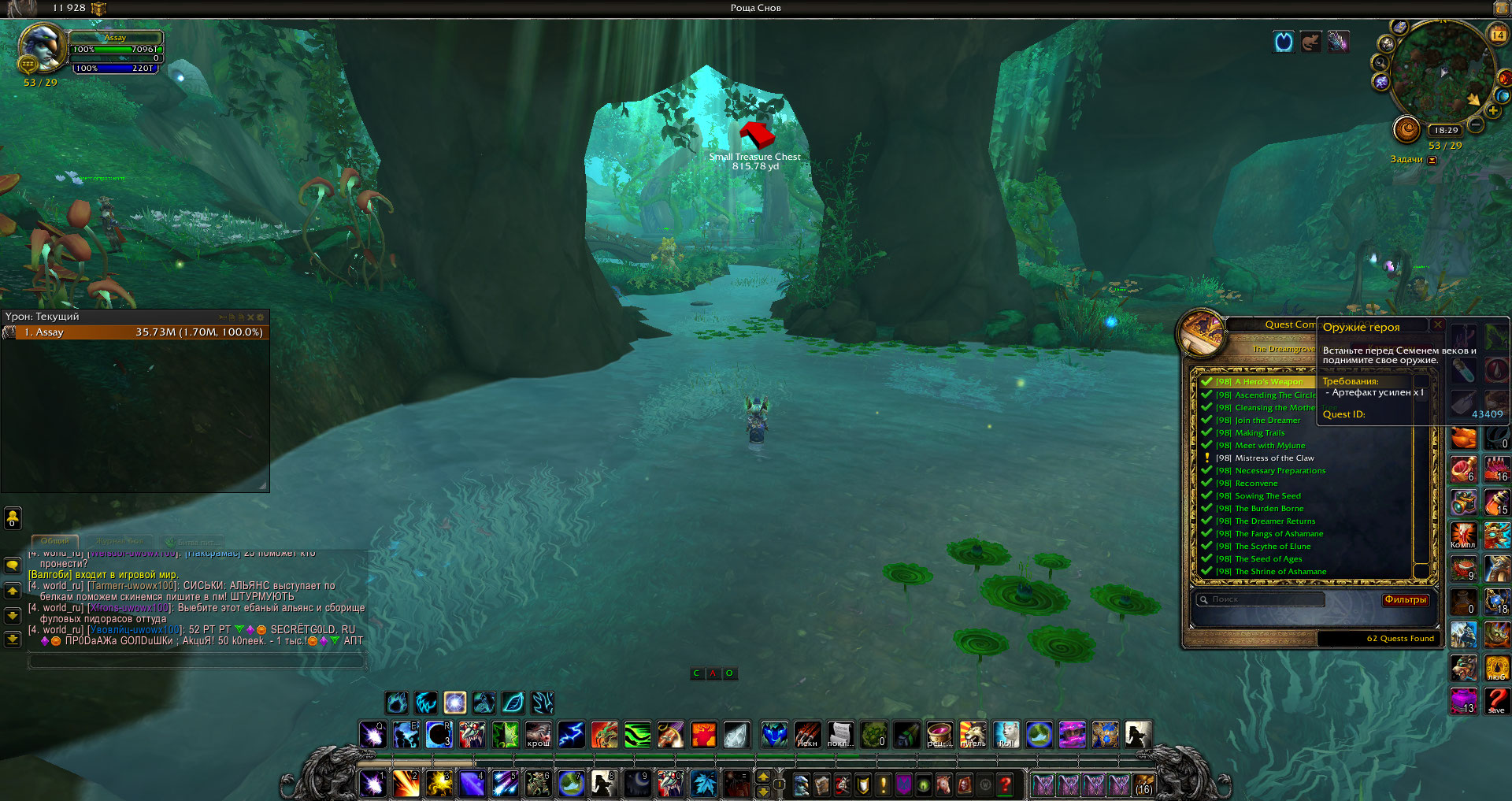 Персонаж давно создан? Играли на 7.1-7.2 ? Создал еще одного друида у меня квест выдается. Выберете себя в цель напишите эти команды и скиньте скриншот .q s 47137 .q s 44868 .q s 46044 |