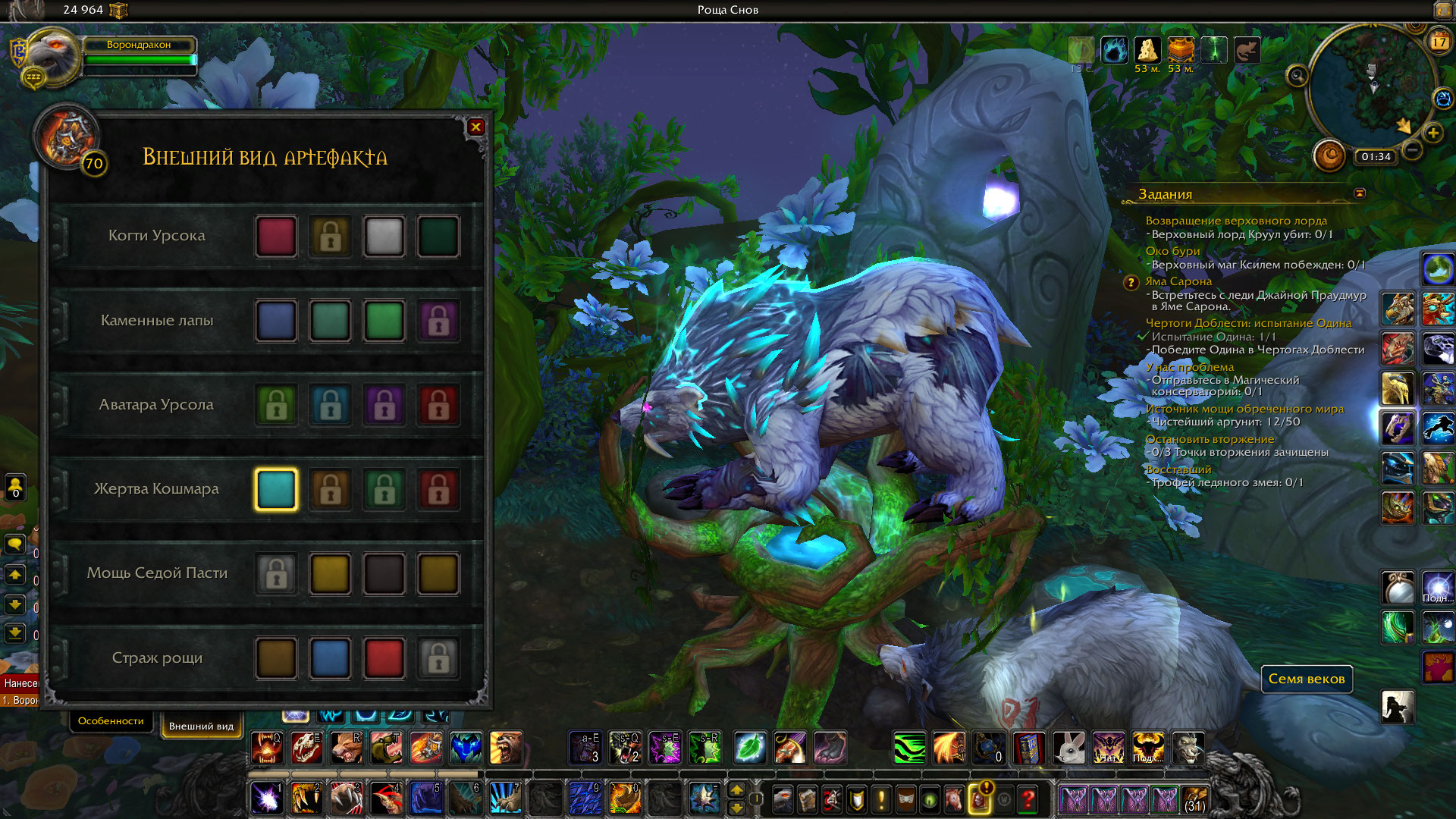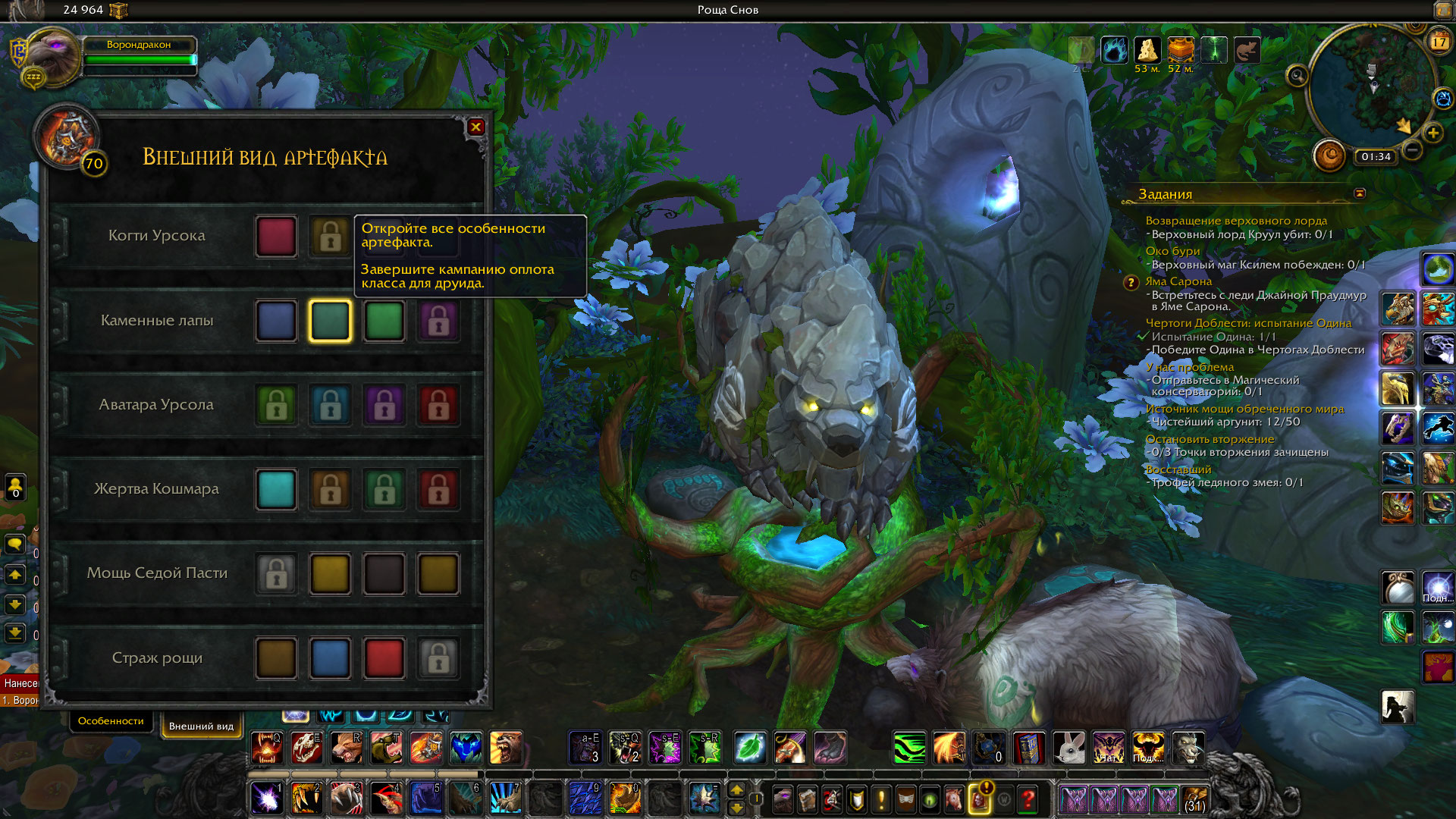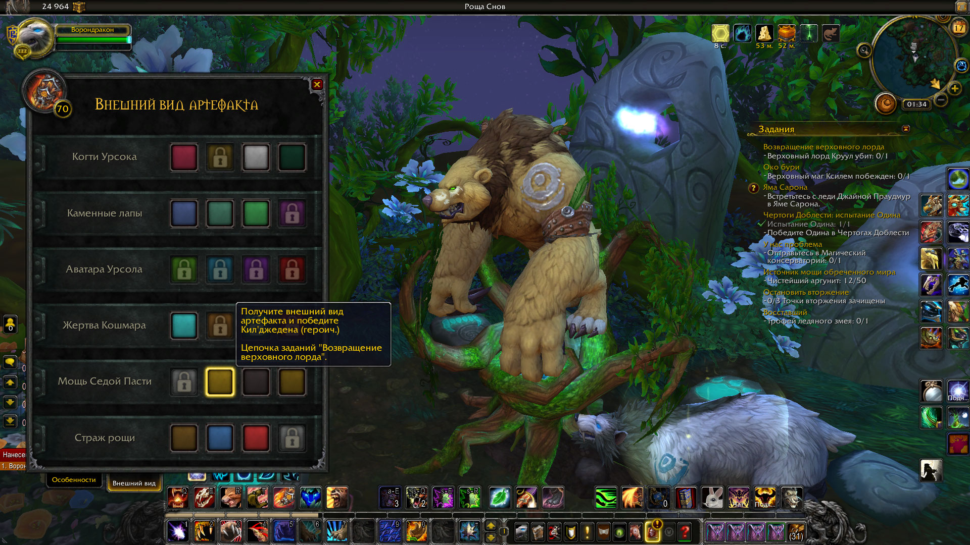 | Description | Персонаж "Ворондракон". Впервые за месяц зашла, сменила специализацию на "Страж" и вместо привычного облика медведя-гориллы увидела облик обычного медведя, который без артефакта. Через стол сменить тоже не получилось, они не сильно меняются. Починка через личный кабинет не помогает. | ||||