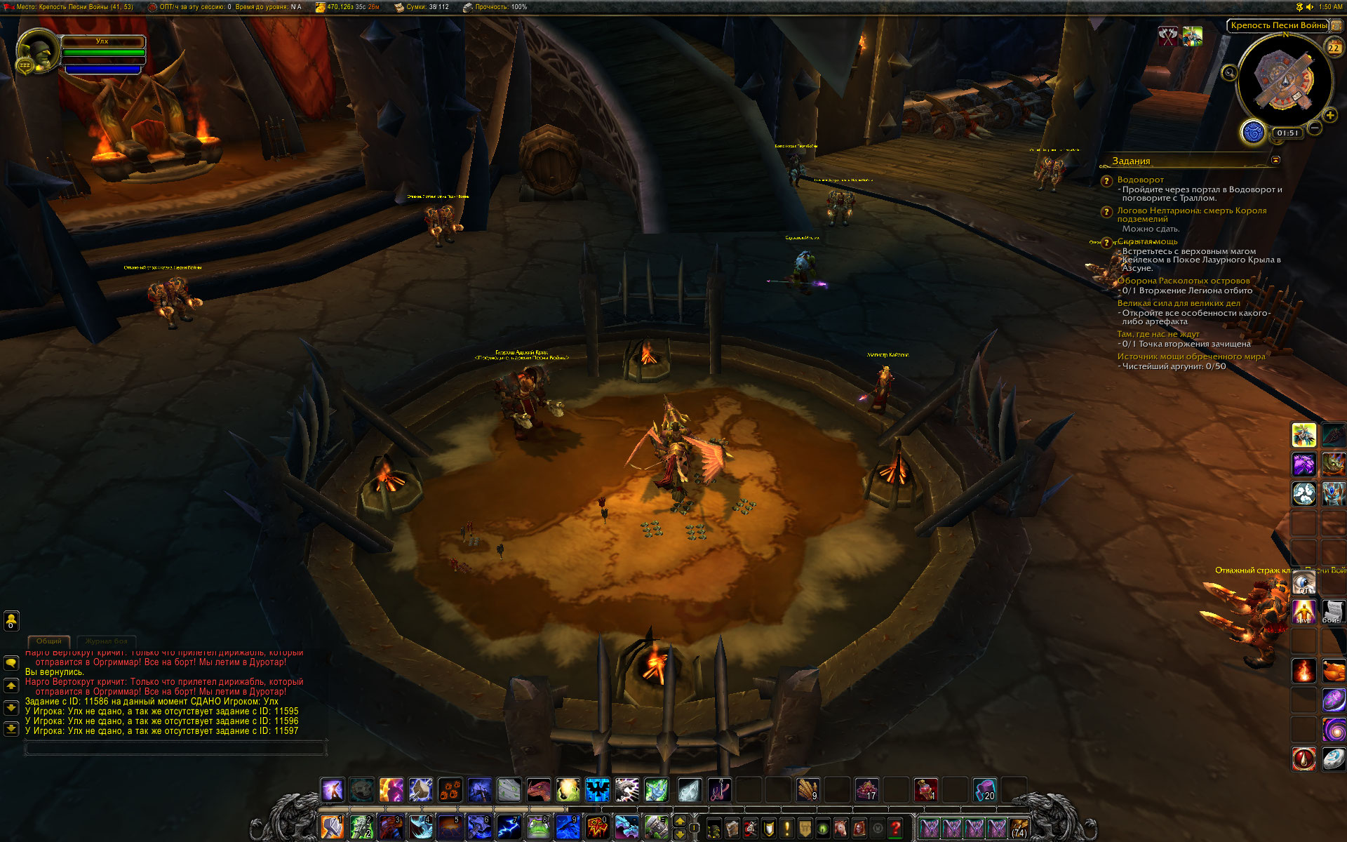 | Description | Сюжетная линия Борейской тундры для Орды начинается в Крепости Песни войны. После вводного квеста https://ru.wowhead.com/quest=11586/%D0%B1%D0%B4%D0%B5%D0%BD%D0%B8%D0%B5-%D0%B0%D0%B4%D1%81%D0%BA%D0%BE%D0%B3%D0%BE-%D0%BA%D1%80%D0%B8%D0%BA%D0%B0#english-comments https://ru.wowhead.com/npc=25256 должен выдать квест https://ru.wowhead.com/quest=11595 (или 11596, 11597 в зависимости от наличия у персонажа некоторых достижений) , выполнение которого открывает фракционные цепочки квестов Таунка, Киринтора и Армии Песни войны.) https://ru.wowhead.com/npc=25256 отсутствует, соответственно квест 11595 не выдается, сюжетная цепочка Орды в Борейке разрушена. | ||||