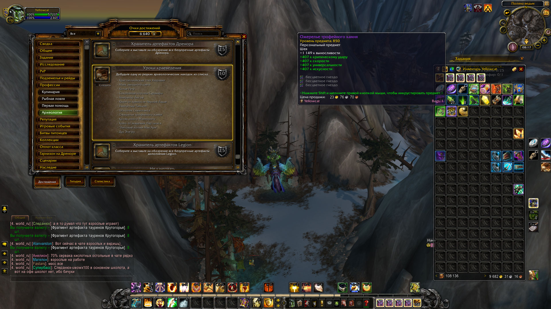 | Description | Достижение необходимо для разблокировки облика артефакта. После получения предмета, необходимого для этого достижения, его не засчитывает. Также большинство этих предметов при создании не попадают в инвентарь а просто испаряются (но прогресс в изучении профессии прибавляется). Удалось получить один из предметов, который все-таки остался, приложу скриншот. ID достижения: 10601 Neozix x100 | ||||