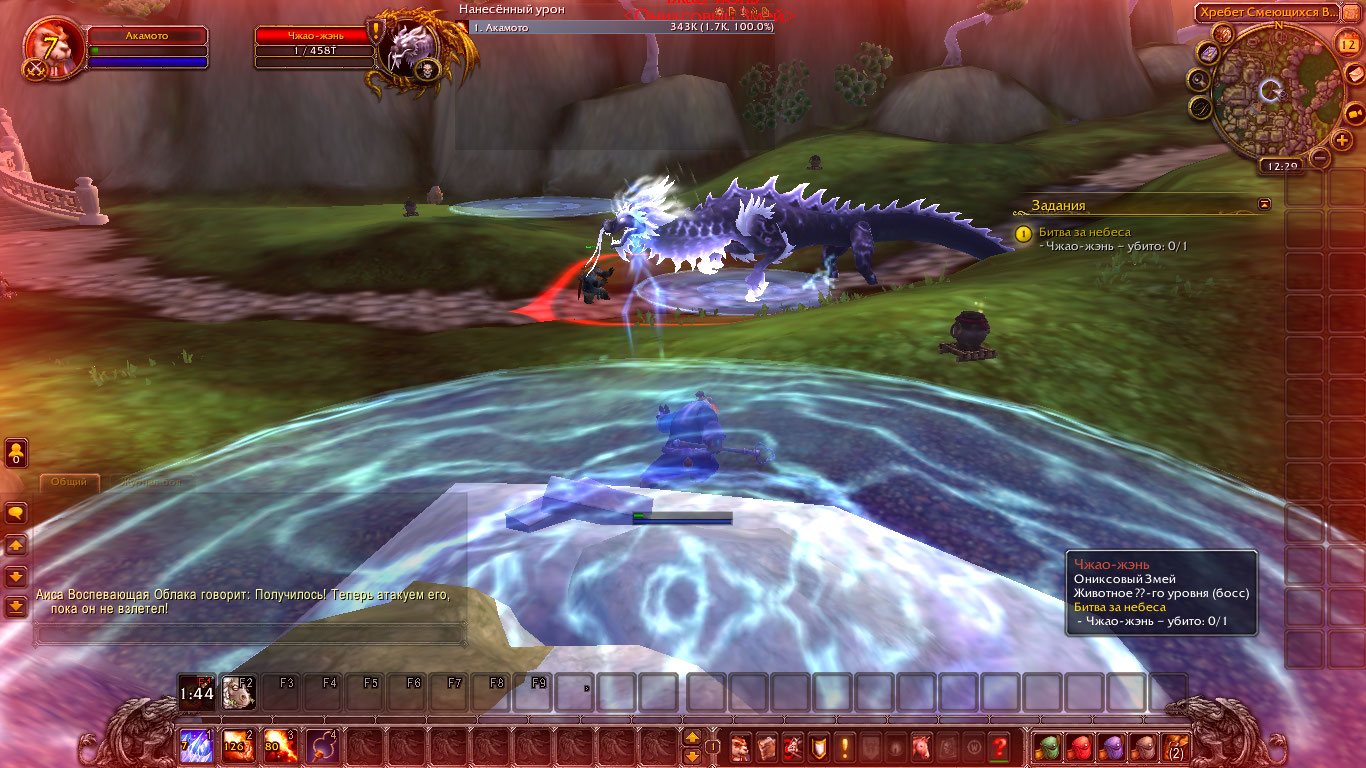 | Description | Когда заходишь за пандарена, появляешься на каком-то острове из которого как я понял можно выбраться только если пройти сюжетку на нём, но вот прикол. Когда появляется квест Битва За Небеса надо убить Ониксового дракона, который не убивается, в конце у него остается 1 хп и всё, я его и руками и магией и феерверками, но он не дохнет | ||||