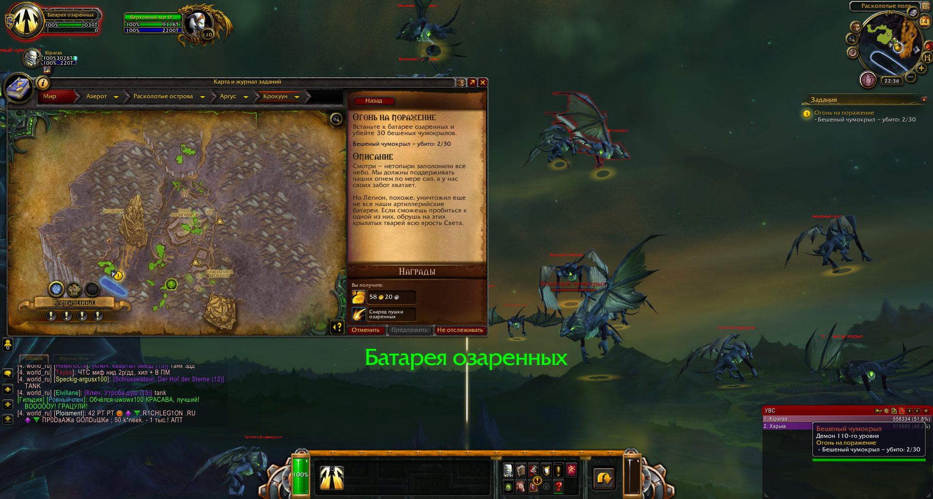 Здравствуйте.Квест https://ru.wowhead.com/quest=47508/огонь-на-поражение, можно выполнить,но https://ru.wowhead.com/npc=122833/бешеный-чумокрыл пропадают с небольшой задержкой |