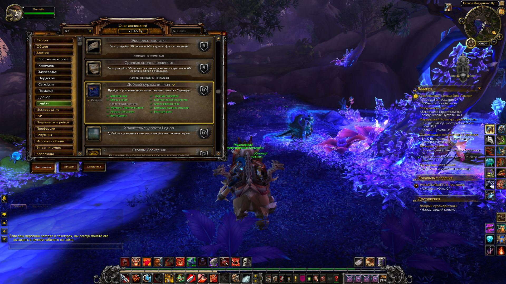 Здравствуйте. если Вы совсем не пользуетесь BtwQuests - мы идем к Вам :) http://tracker.legionbugs.com/view.php?id=12992#c38579 отсюда скачайте аддон и сделайте скриншот главы Сурамаритянина. Сделайте скриншоты полной главы или хотя бы так де как на моем скриншоте и забросьте сюда. WoWScrnShot_071919_033928.jpg (389,821 bytes) |