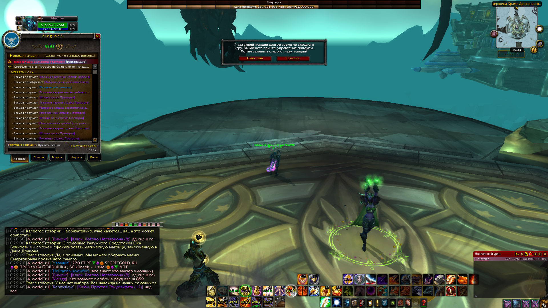| Description | когда гильд мастер долго офлайн, появляется кнопка сместить ги мастера. но у нас она не работает | ||||
