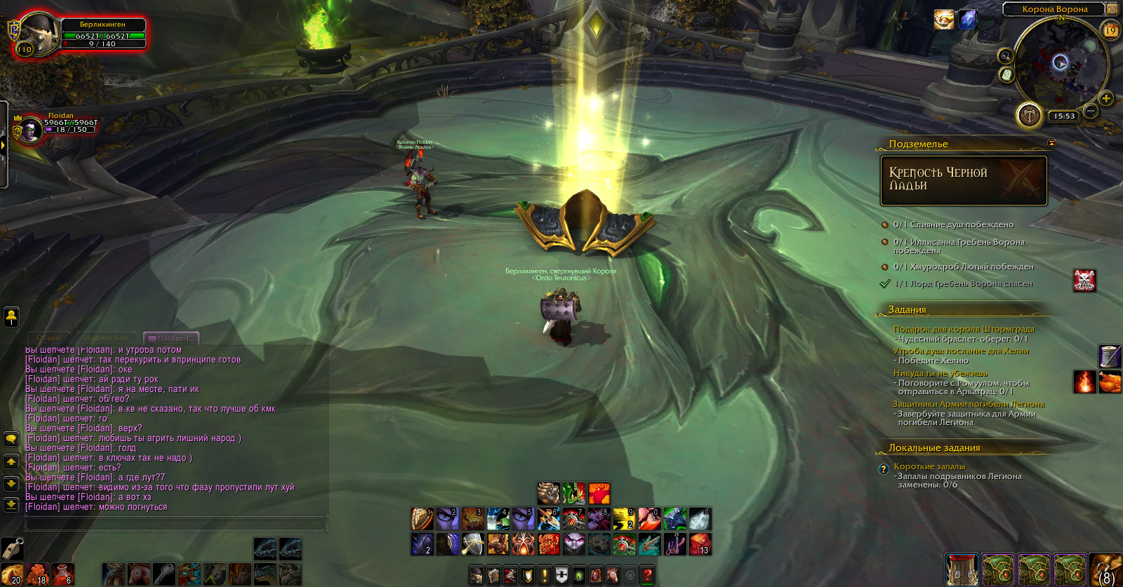 Была такая же проблема у всей пати с лутом с этого босса (не по этому квесту, а вообще), когда убили его во время https://ru.wowhead.com/spell=199193/хитроумие-повелителя-ужаса - у всей пати не было лута с босса, никакого вообще. Судя по чату на скрине - та же ситуация. Проблема решилась легко: привели моба, убили рядом с трупом босса - лут с босса в мобе был. |