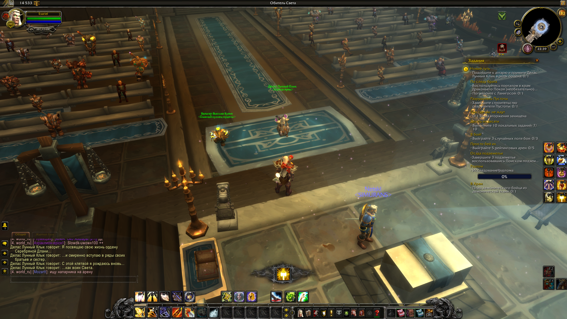 | Description | Сюжетный квест в оплоте Паладинов, по которому нужно поговорить с "Делас Лунный Клык", она должна принести клятву. После чего я должен нажать кнопку и квест завершиться. Но после этого она пропадает и я не могу сдать квест. Пробовал перезаходить и чинить персонажа через форум. Ничего не помогло. | ||||