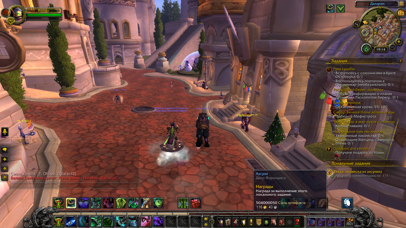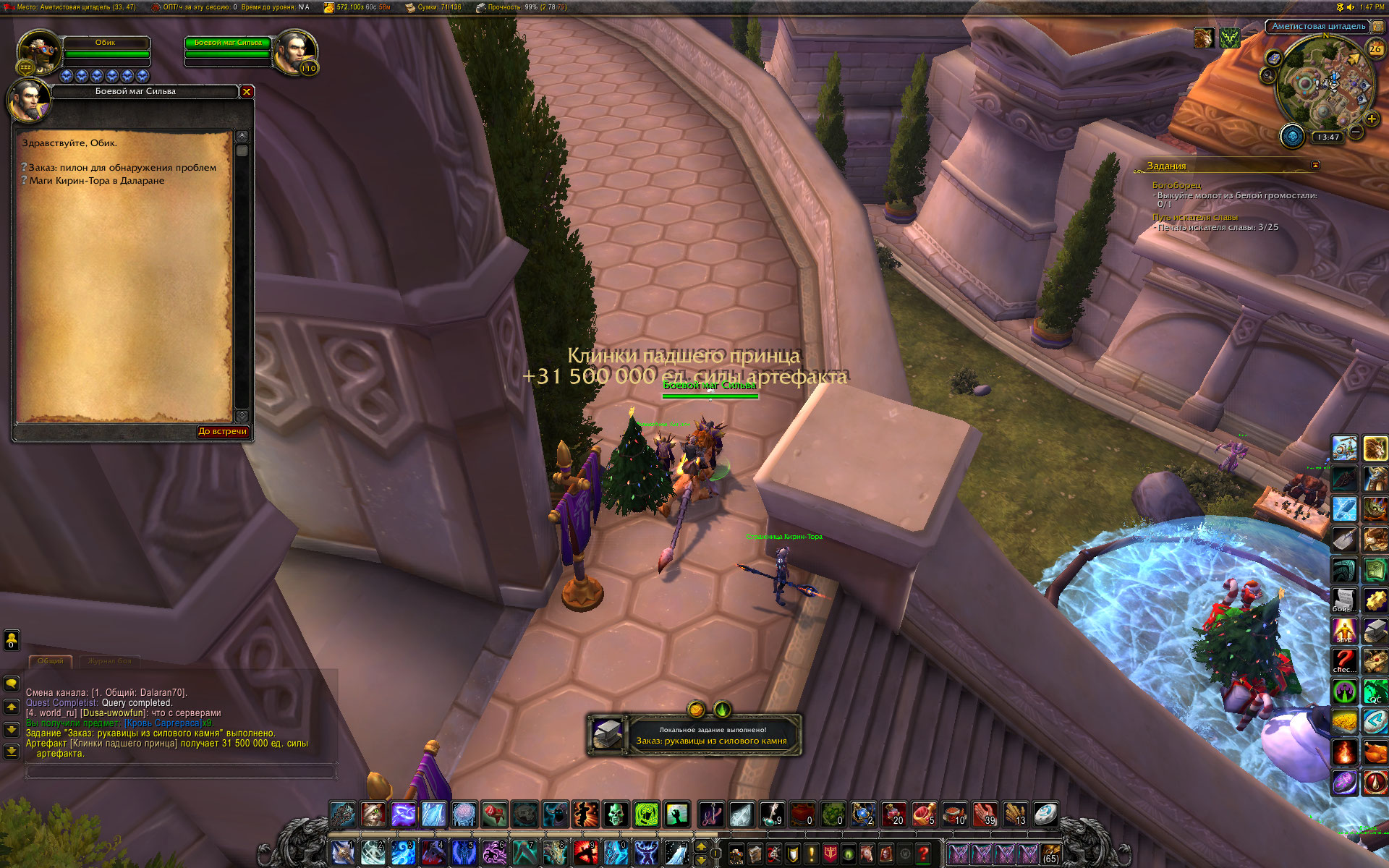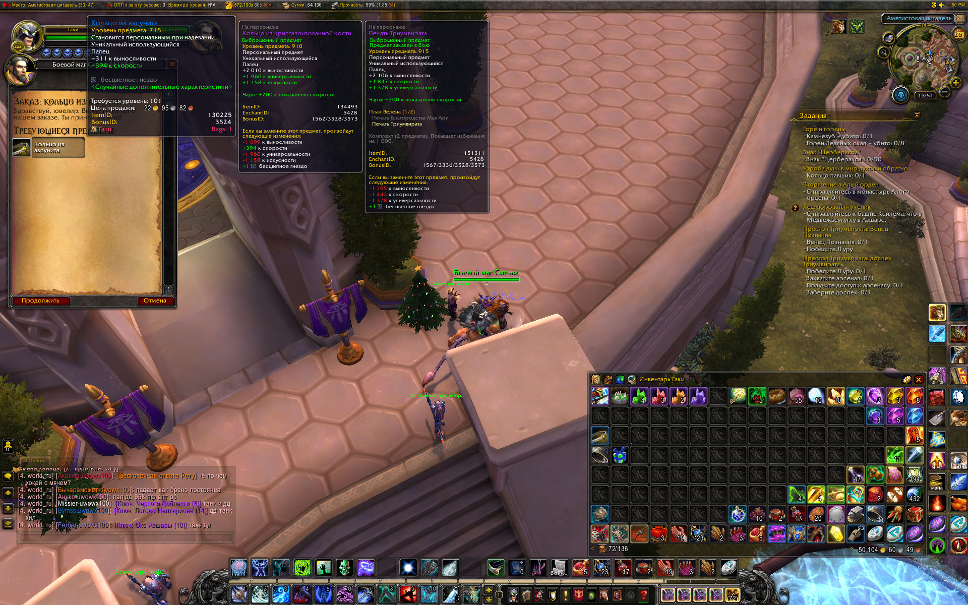 26.12 с 16 до 18 у меня и у ТС добавлены скриншоты - единственное отличие видимо - сервер. Эпик у меня и х100 у ТСа. Видно на скриншоте, что в Даларане по разному выдаются разные локалки. Или не выдаются вовсе. И госсипы у НПС Киринтора разные. Поэтому и написал, что проверить наличие локалок должен один человек, отчету которого можно доверять. То есть тестер. В той теме за все локалки пункт 61 помечен как исправленный. Возможно, волна исправлений зацепила не все возможные варианты локальных заданий по профам. Другим чем то объяснить не могу тот факт что мне локалки предлагаются у НПС, а ТСу выдаются автоматом в зоне. У него локалка висит в списке исполняемых, а госсипа у НПС нет. |
