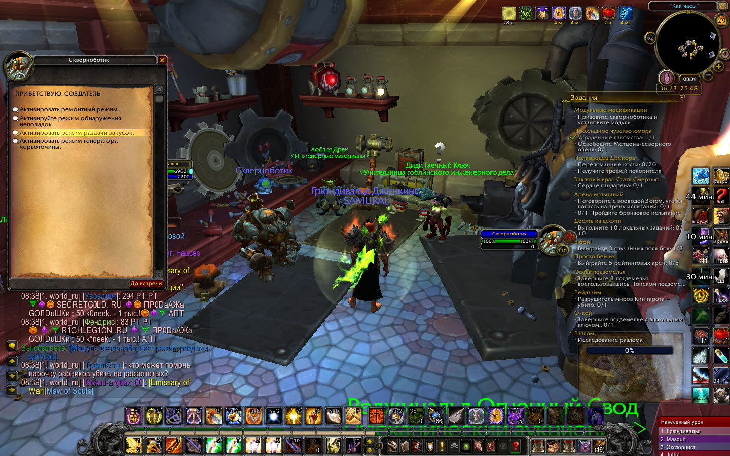 | Description | День добрый! проблема следущего характера. Немогу очень давно сдать кв Модульные модификации(https://ru.wowhead.com/quest=40864) Не могу сдать квест, награду за который дают (модуль скверноботика :ремонтный режим) . - Даный модуль был изучен еще до переноса персонажа на увов. Скорее всего причина в переносе персонажа год назад, в последствии профа чуть багнулась и завершить кв и продолжить цепочку кв нету возможности. Прошу помочь в решинии беды) Спасибо ! | ||||