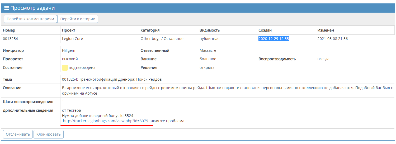 | Additional Information | от тестера Нужно добавить верный бонус Id 3524 http://tracker.legionbugs.com/view.php?id=8079 такая же проблема | ||||