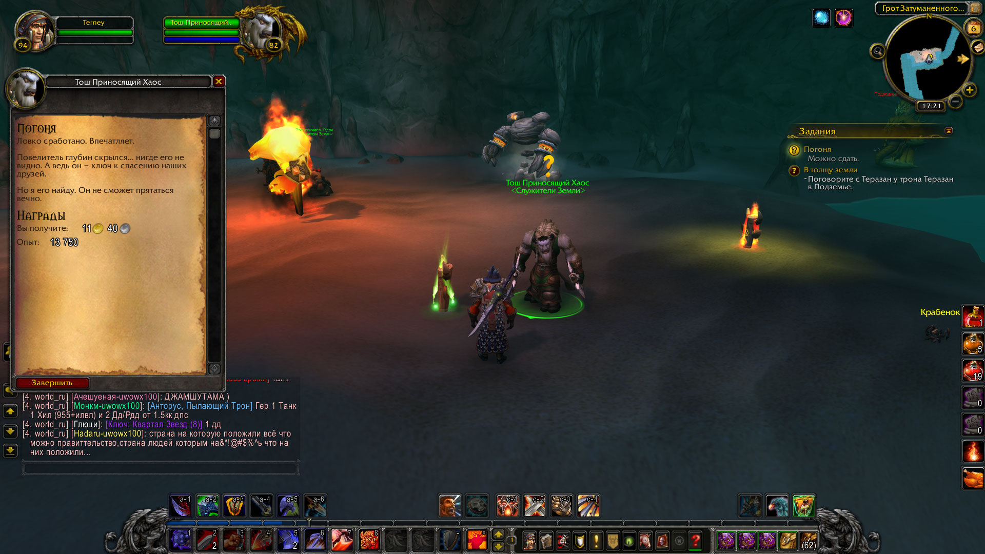 Это странно конечно, но квест можно сдать у Тоша в Гроте Затуманенного света. Можно закрывать, прошу сменить указатель кому сдавать WoWScrnShot_010621_222134.jpg (364,761 bytes) |