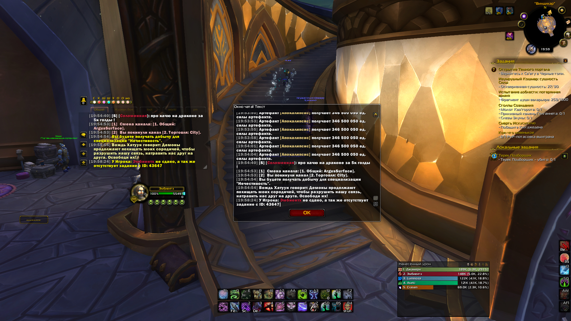 | Description | После открытия скрытого облика артефакта https://ru.wowhead.com/item=139548/%D0%BA%D1%80%D1%8E%D0%BA-%D0%B6%D0%BD%D0%B5%D1%86%D0%B0-%D0%BA%D0%BE%D1%81%D1%82%D0%B5%D0%B9 не засчитываются критерии для открытия других расцветок данного артефакта, а именно "Выполнить 200 локальных заданий" и "Пройти 30 подземелий Legion" Изначально счётчик работал, но после достижения 200 и 30 сбросился до 0 и больше не считает. Компания оплота рыцаря смерти пройдена полностью. Также на другом персонаже на этом же аккаунте (Охотник) расцветки для скрытого артефакта открыты, т.е счетчик работал корректно. | ||||