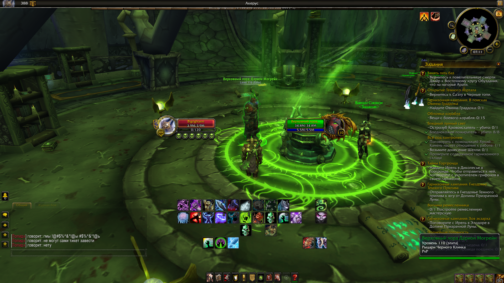 | Additional Information | "Дарион Могрейн" в Акерусе (который на расколотых островах) не функционирует(т.е он пустой как обычный нпц и взаимодействовать с ним нельзя), хотя должен выдать еще 2 стартовые задания на легендарное оружие (лед и кровь в моем случае), т.е должно открыться окошко с 3мя оружиями и я должен буду тыкнуть по одному из них чтобы взять задание. | ||||