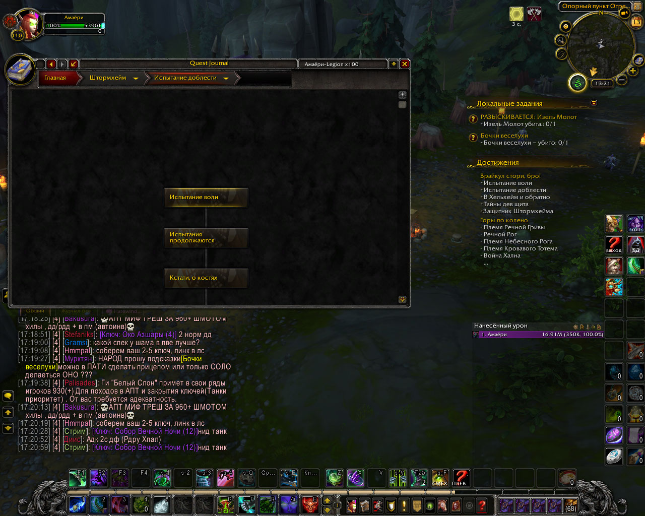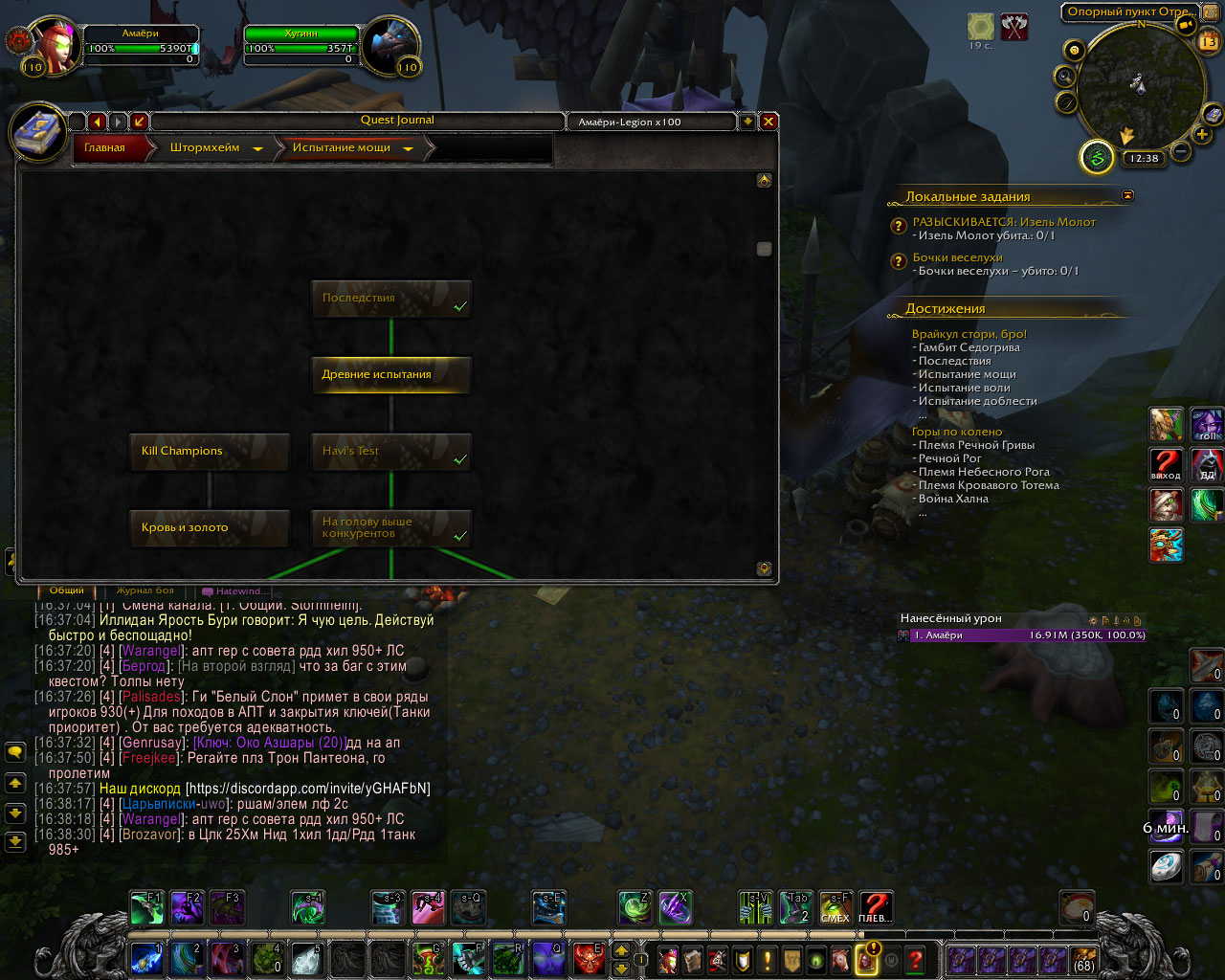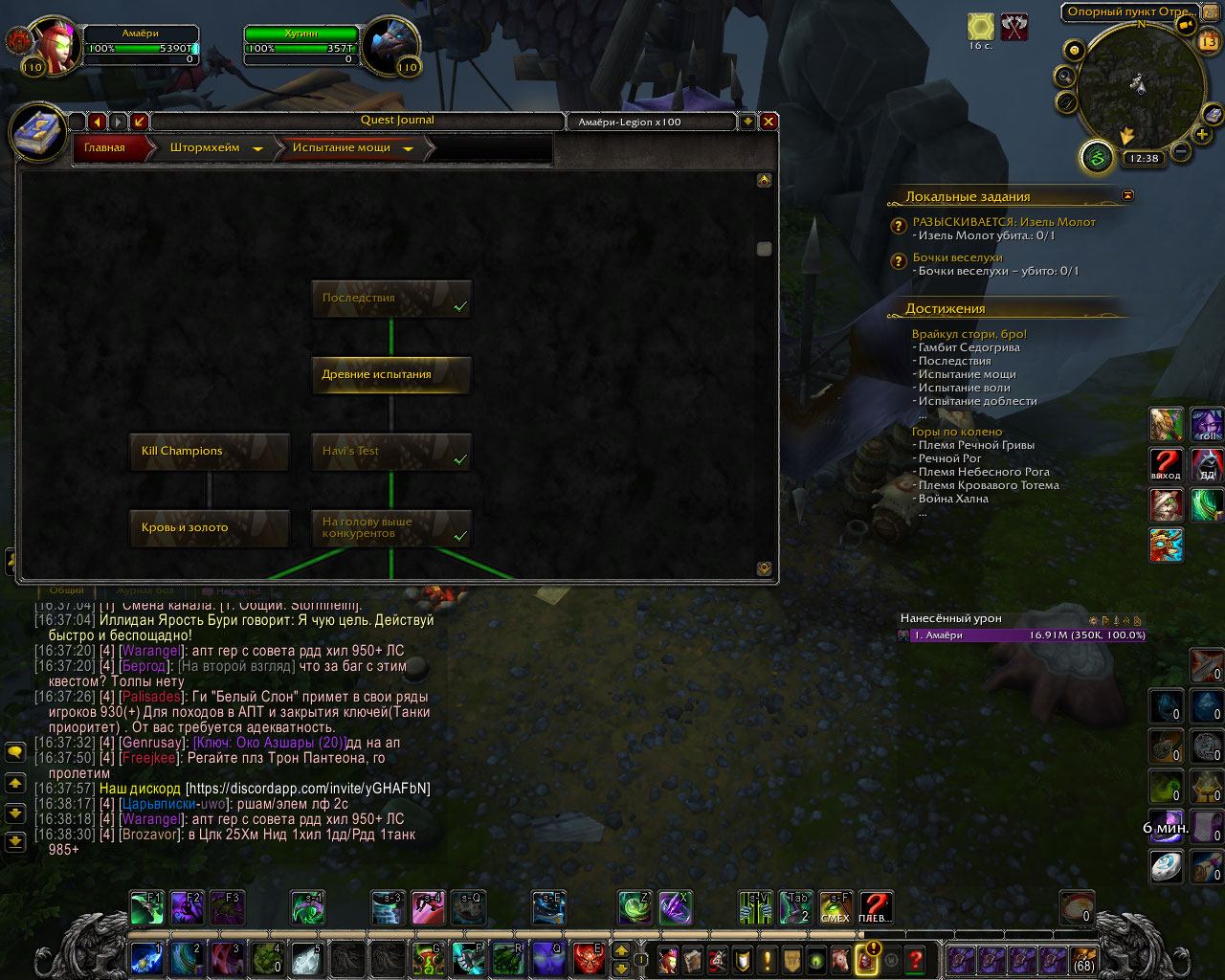 Здравствуйте. Мы с Амаери наверно час ковырялись проверяли квесты. К сожалению, не пришло в голову проверить еще цепочку квестов первого критерия за Орду. а ведь сто процентов, что первый критерий был выполнен за Альянс, раз и квест https://ru.wowhead.com/quest=38210 тоже выполнен. Возможно у https://ru.wowhead.com/npc=97305 квест https://ru.wowhead.com/quest=38459 появляется только когда засчитан первый критерий для Орды. Я не додумался сразу спросить у ТСа , делал ли он заново квесты первой цепочки на Орде, начиная с https://ru.wowhead.com/quest=44701/%D1%88%D1%82%D0%BE%D1%80%D0%BC%D1%85%D0%B5%D0%B9%D0%BC который берется в Штормхейме у https://ru.wowhead.com/npc=107460 . если не делал - это может быть спасением, так как первый критерий не пересекается у Альянса и у Орды. Во всяком случае попробовать можно. |