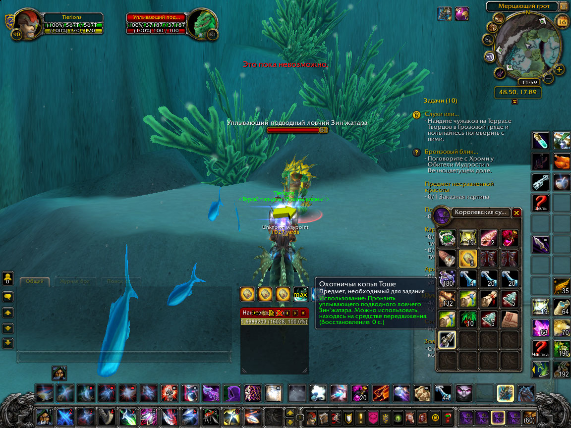 | Description | https://ru.wowhead.com/quest=25221/%D0%BF%D0%BE%D0%B3%D0%BE%D0%BD%D1%8F В квесте https://ru.wowhead.com/item=54466/%D0%BE%D1%85%D0%BE%D1%82%D0%BD%D0%B8%D1%87%D1%8C%D0%B8-%D0%BA%D0%BE%D0%BF%D1%8C%D1%8F-%D1%82%D0%BE%D1%88%D0%B5 нельзя использовать, т.к пишет это пока невозможно https://ru.wowhead.com/npc=40174/%D1%83%D0%BF%D0%BB%D1%8B%D0%B2%D0%B0%D1%8E%D1%89%D0%B8%D0%B9-%D0%BF%D0%BE%D0%B4%D0%B2%D0%BE%D0%B4%D0%BD%D1%8B%D0%B9-%D0%BB%D0%BE%D0%B2%D1%87%D0%B8%D0%B9-%D0%B7%D0%B8%D0%BD%D0%B6%D0%B0%D1%82%D0%B0%D1%80%D0%B0 У нас стоит на месте и имеет полное хп, чего быть не должно https://www.youtube.com/watch?v=EMal7dDHkGs | ||||