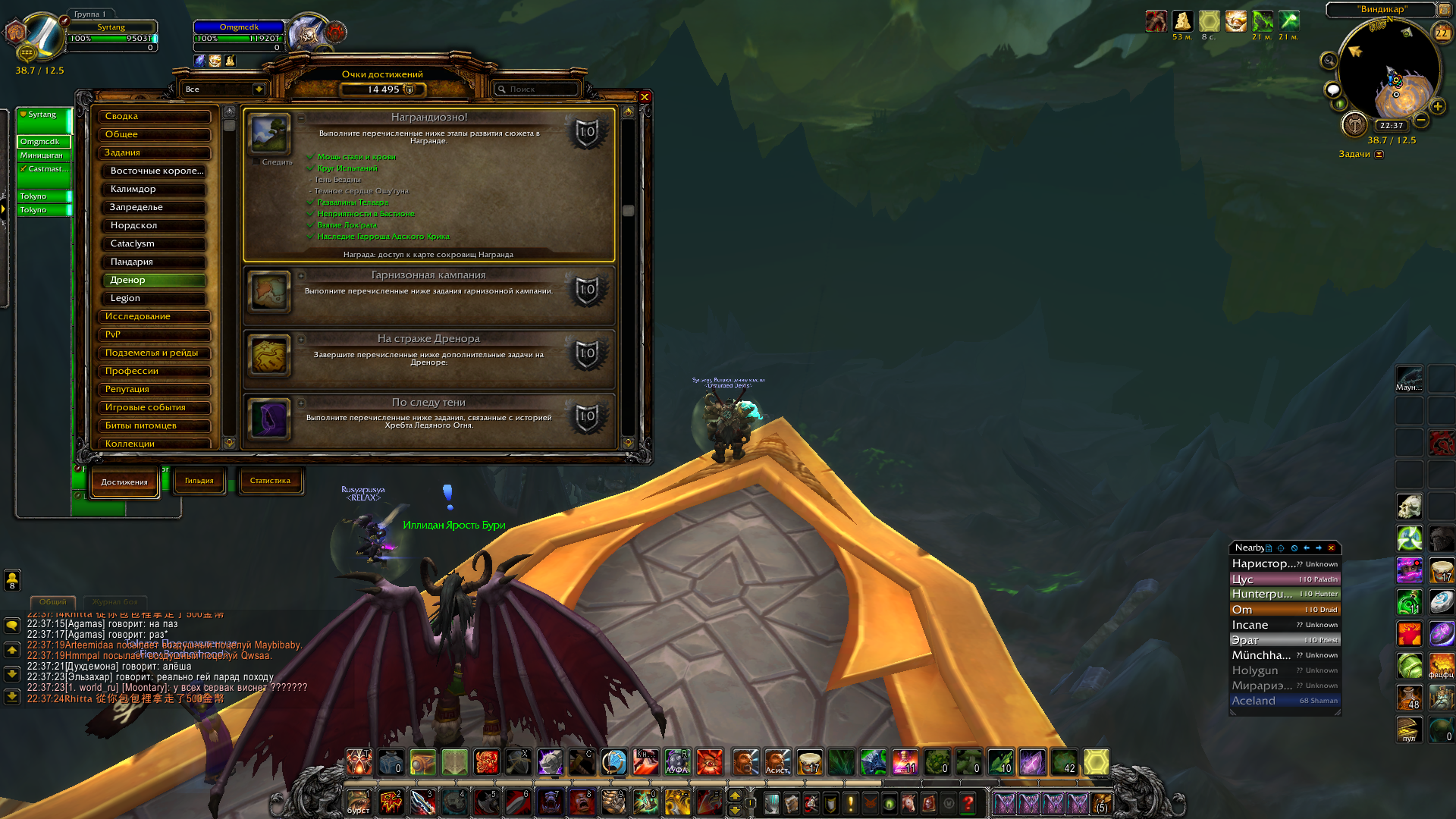 | Description | отсутствует цепочка квестов для достижения https://ru.wowhead.com/achievement=8928/награндиозно , а именно https://ru.wowhead.com/quest=35317/темное-сердце-ошугуна и https://ru.wowhead.com/quest=35088/тень-бездны проверял выполнение цепочки по макросу /run print(IsQuestFlaggedCompleted(id квеста)) в итоге https://ru.wowhead.com/quest=34943/старый-знакомый выполненно (true) ,а https://ru.wowhead.com/quest=34894/редкий-цветок нет (false). Отсутствует напс для принятие данного квеста.Так же на глобальной карте нету даже знаков восклицания на важных заданиях. | ||||