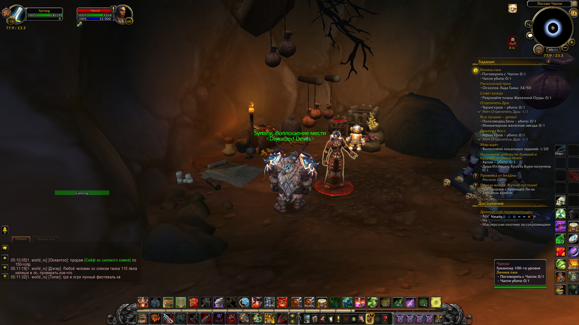 Задачу можно считать закрытой.Однако,теперь проблема с следующим квестом в этой цепочке. https://ru.wowhead.com/quest=34932/личина-лжи Баба не кликабельна и показывается агрессивной,однако никаких действий с ней предпринять нельзя.Смотрел видео с прохождением,с ней можно было говорить.В моем же случае-нет. |