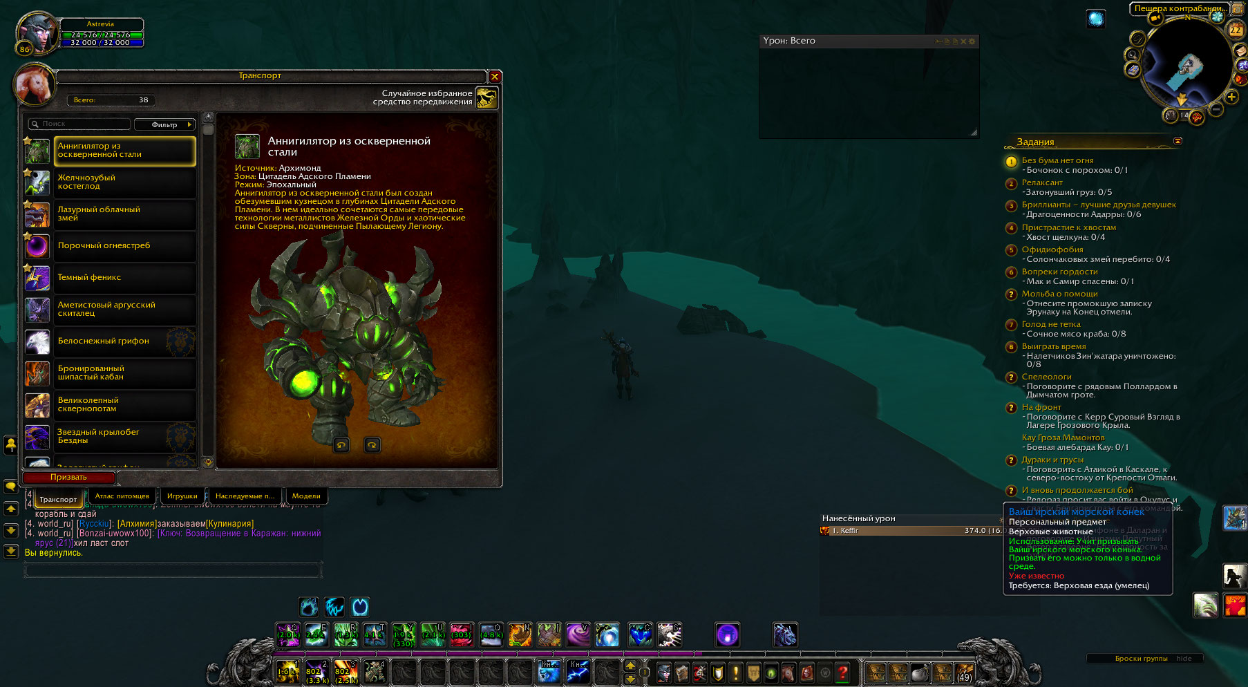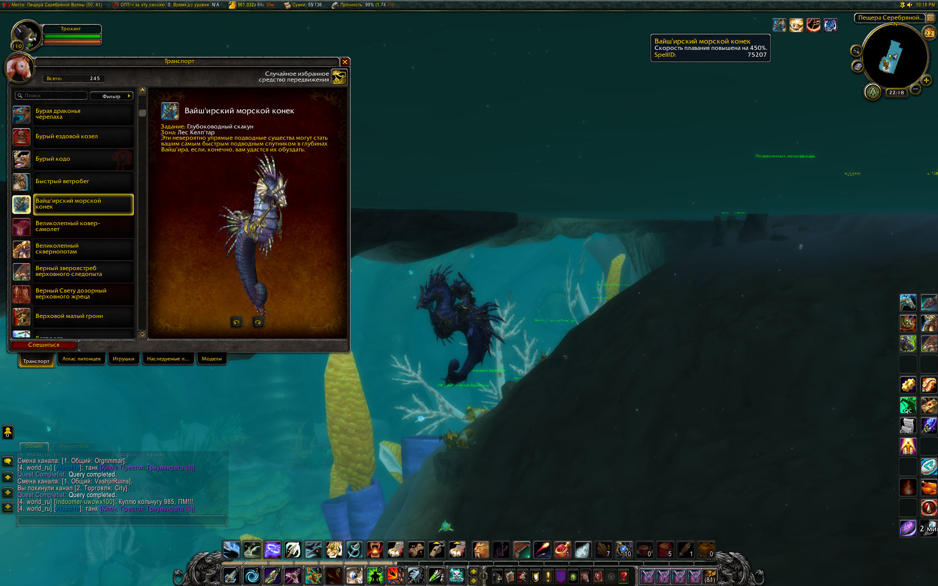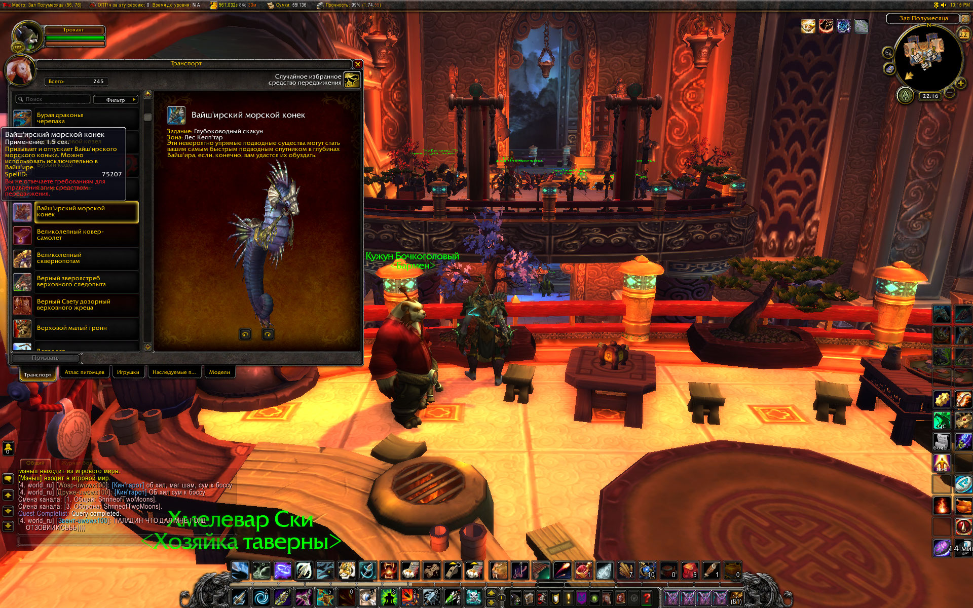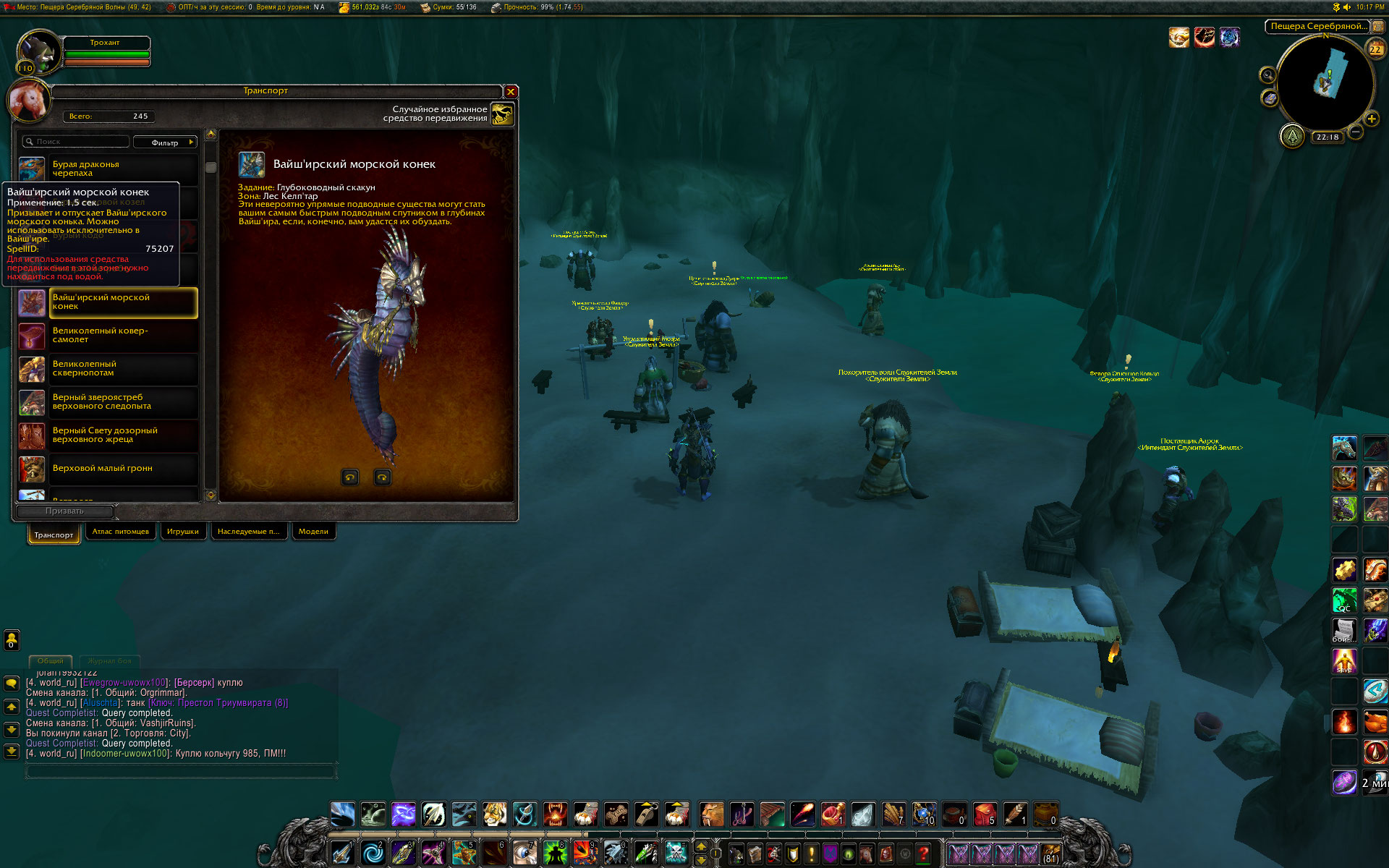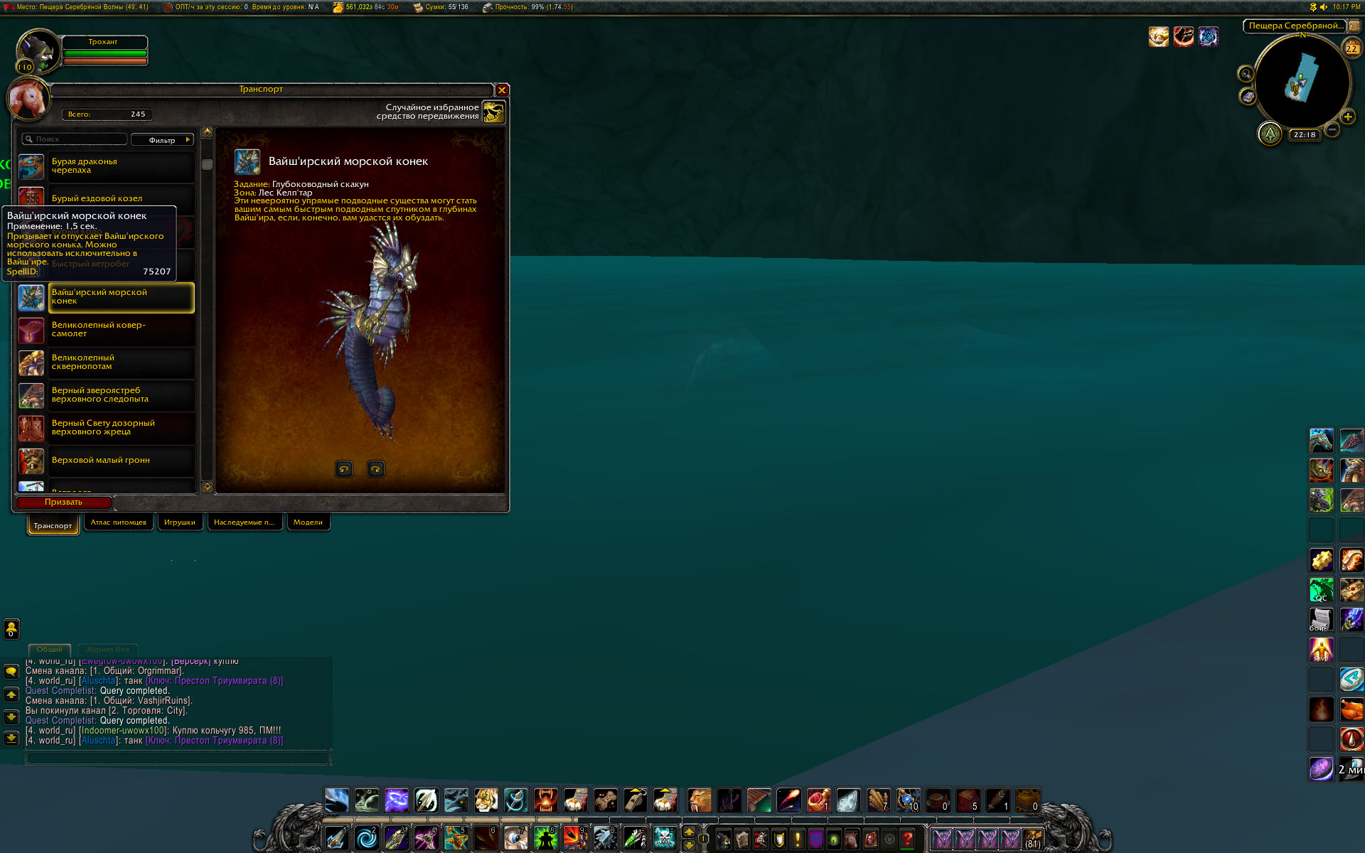 | Description | Сделал квест в Вайш"ире на Морского конька, изучил его, но в коллекции транспорта он не появился | ||||