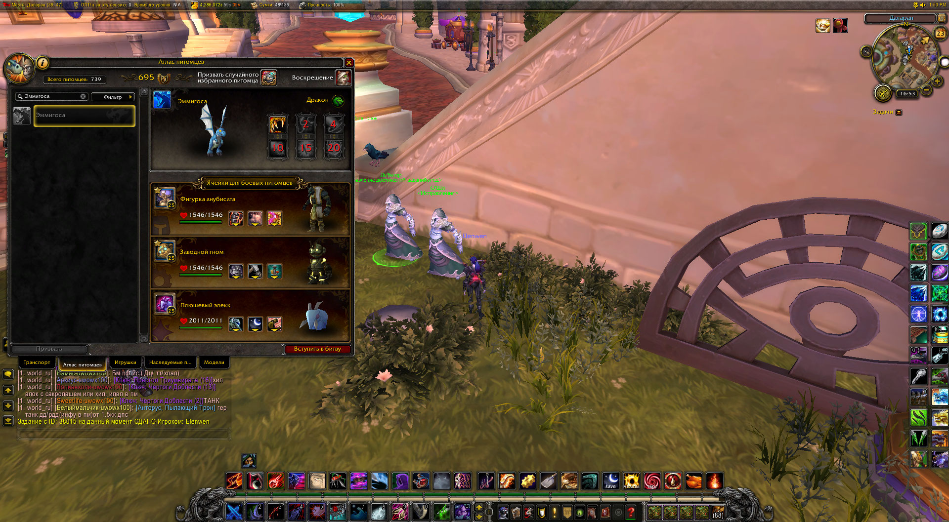 | Description | Отсутствует питомец https://ru.wowhead.com/item=129178/%D1%8D%D0%BC%D0%BC%D0%B8%D0%B3%D0%BE%D1%81%D0%B0 задание https://ru.wowhead.com/quest=38015/%D0%BD%D0%B0-%D0%B3%D1%80%D0%B0%D0%BD%D0%B8 было выполнено и дополнительно исправлено у О'Ши. Питомец также отсутствует у Де'Багера. | ||||