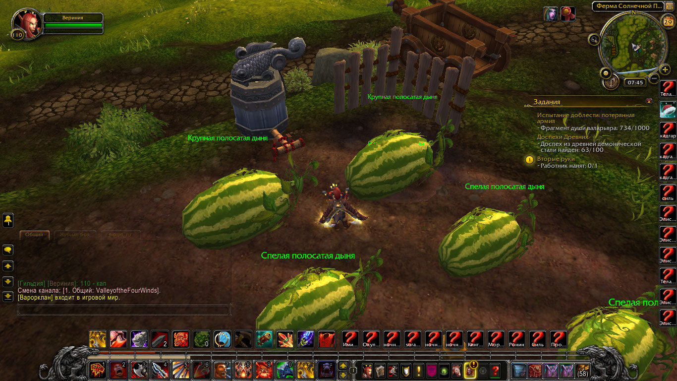 Тоже добавлю в огород.Посадил https://www.wowhead.com/item=91806/unstable-portal-shard ,но что-то ничего не выросло.Должен вроде появиться портал в одну из столиц,но на его месте какое-то мерцание. WoWScrnShot_020221_114037.jpg (607,967 bytes) WoWScrnShot_020221_114140-2.jpg (485,196 bytes) |