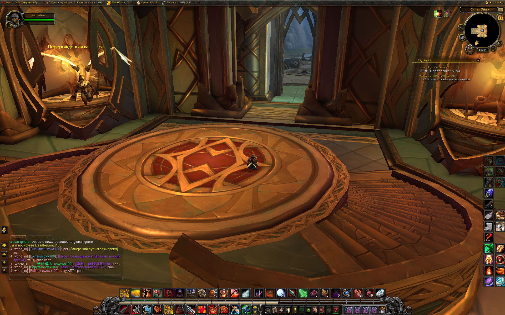 Чет не то. Там же следующий после этих квест - зайти внутрь. Как могло откатить? Репа влияет только на сам факт принятия квеста - доступен-недоступен. Вот на этом чаре сделан Штормхейм, Превознесение, но сама цепочка Баланс сил на втором или третьем этапе. то есть до получения квеста Метка. Барьера нет. WoWScrnShot_013121_164430.jpg (568,173 bytes) |
