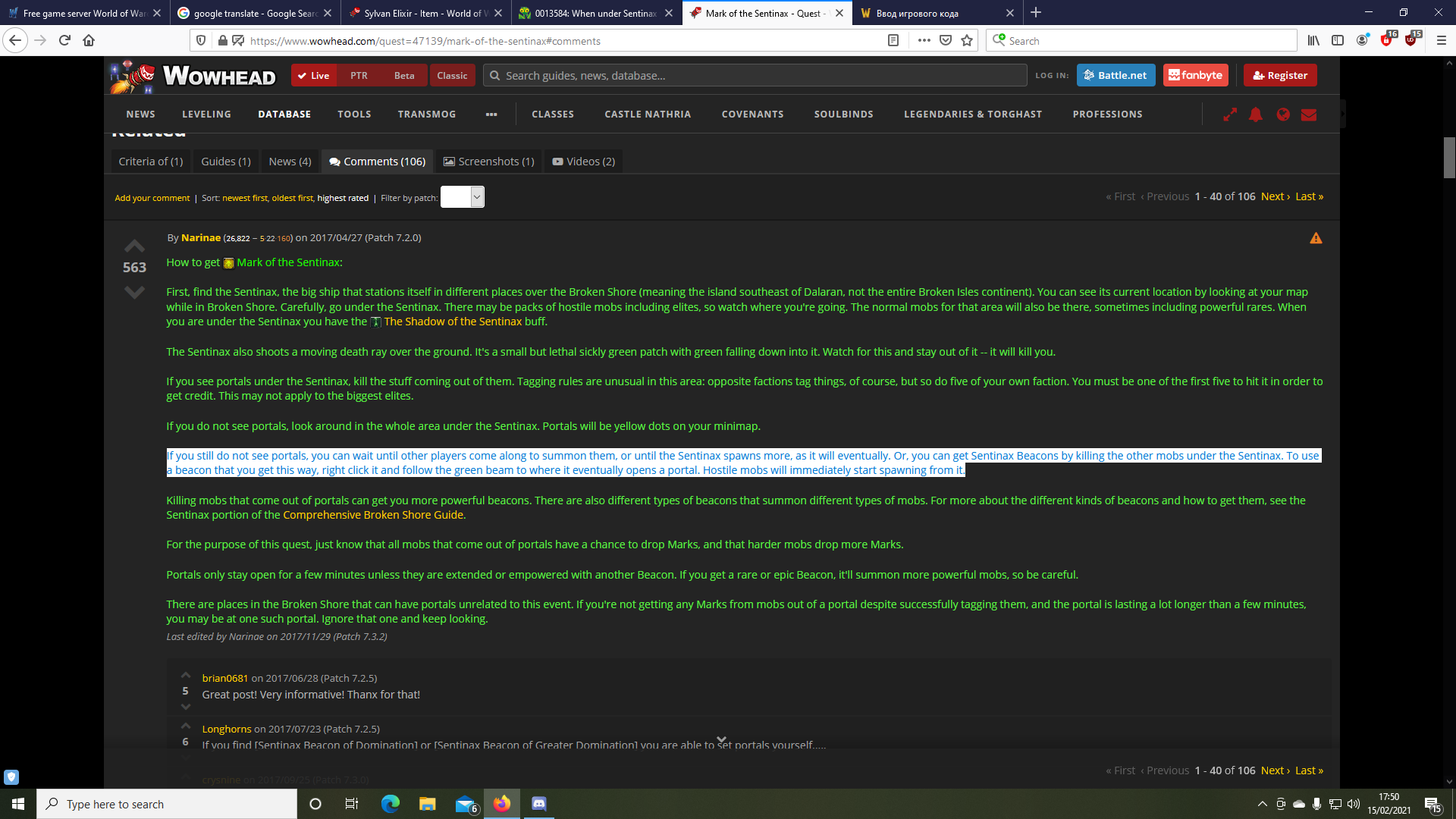 heres a ss of wowhead comments Legion sentinax portals (362,600 bytes) |