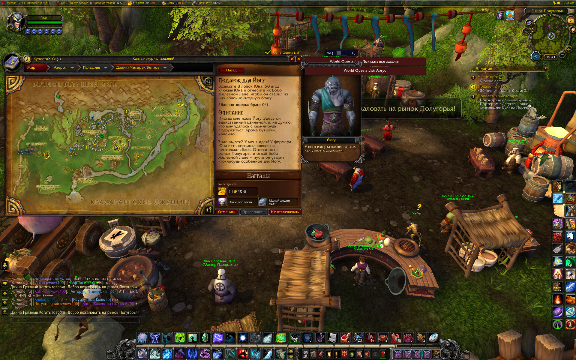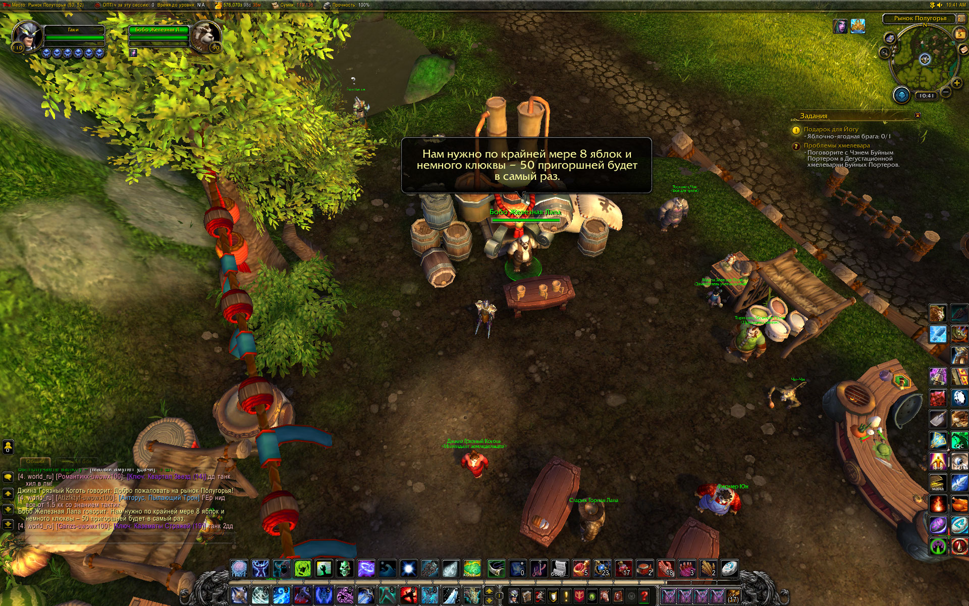 | Description | Дейлик https://ru.wowhead.com/quest=30478 , два ингредиента должны добываться из контейнеров https://ru.wowhead.com/object=211022/%D0%BA%D0%BB%D1%8E%D0%BA%D0%B2%D0%B0-%D1%8E%D0%BD%D0%B0 получаем https://ru.wowhead.com/item=80235/%D0%BA%D0%BB%D1%8E%D0%BA%D0%B2%D0%B0-%D1%8E%D0%BD%D0%B0 https://ru.wowhead.com/object=211020/%D1%8F%D0%B1%D0%BB%D0%BE%D0%BA%D0%B8-%D1%8E%D0%BD%D0%B0 получаем https://ru.wowhead.com/item=80234/%D1%8F%D0%B1%D0%BB%D0%BE%D0%BA%D0%BE-%D1%8E%D0%BD%D0%B0#contained-in-object у нас отсутствуют оба контейнера, указатель квеста сразу отправляет к НПС, которому надо сдать ингредиенты и получить результирующий предмет. Возможно влияет фаза местности, так как дейлик попался впервые после завершения цепочки земледельцев и когда практически со всеми репутация уже была прокачана до уровня "лучший друг". Во всяком случае пока фермер стоял в домике там была какая то обстановка внутри, сейчас там голые стены. | ||||