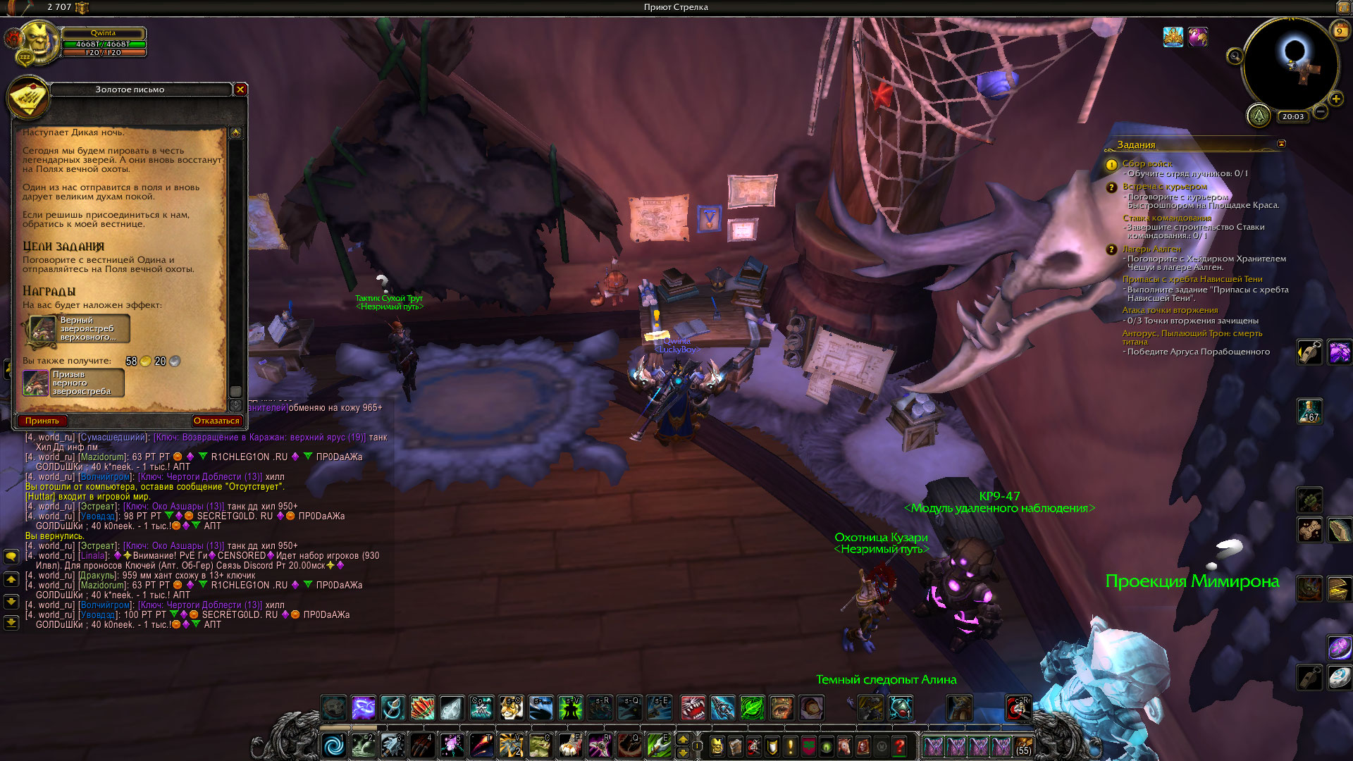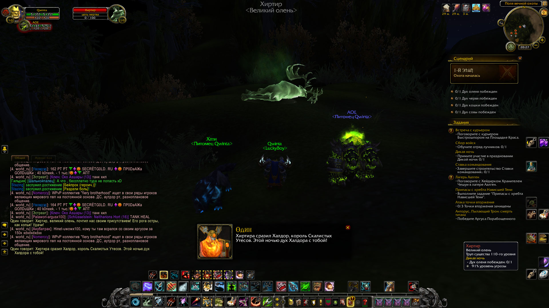 | Description | Это квест на получение классового маунта охотника, проблема в сценарии, не засчитывают убийство мобов : Этап 1: Охота началась Отправляйтесь на охоту, выслеживая с помощью своих способностей четырех великих зверей (Гарос, Хиртир, Кетлингр и Хаброк). | ||||