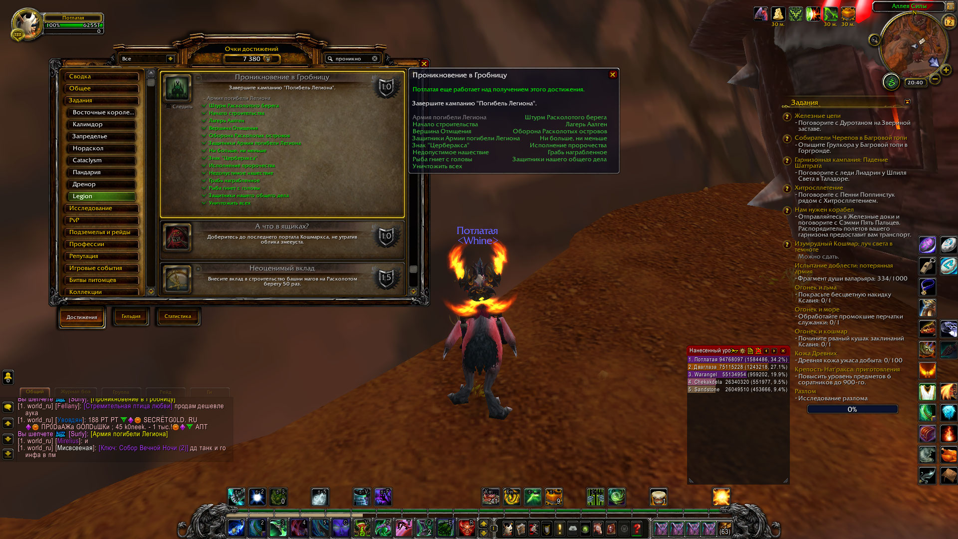 Здравствуйте. Там не репутация. Первый критерий должен быть зачтен по завершении единственного квеста. Для проверки. Таргет на себя, потом в любом чате введите команду .q s 46730 если напишет, что сдано - подойдите к дебагеру и перезачтите у него квест 46730. а вот если не сдано - тогда тестеры подскажут что делать. |