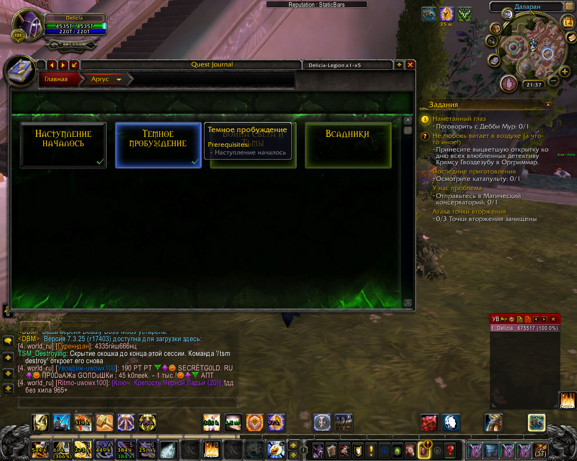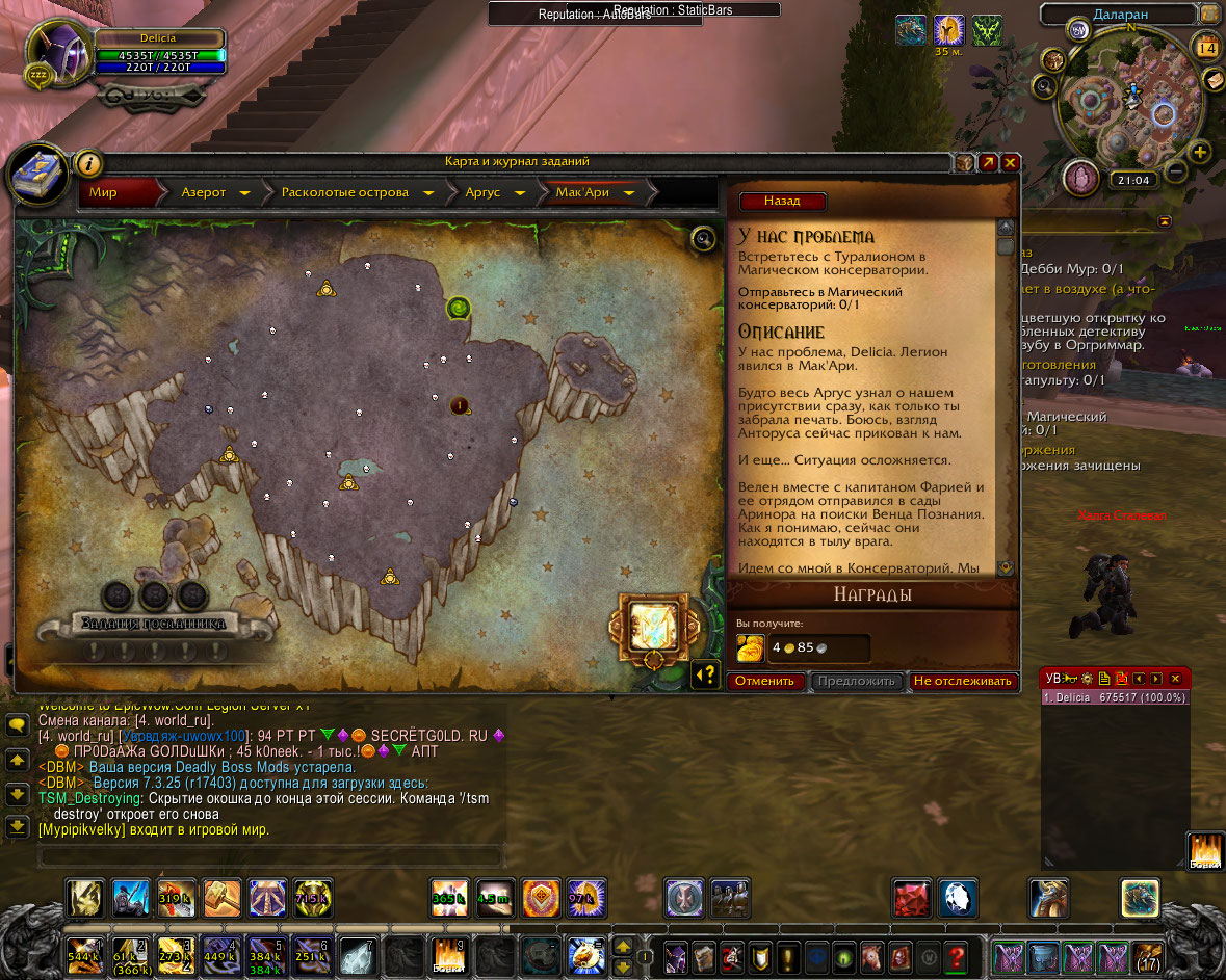 | 0013740 | Legion Core | Quests[Argus] / Задания[Аргус] | public | 2021-02-13 21:49 | 2021-02-22 14:46 |