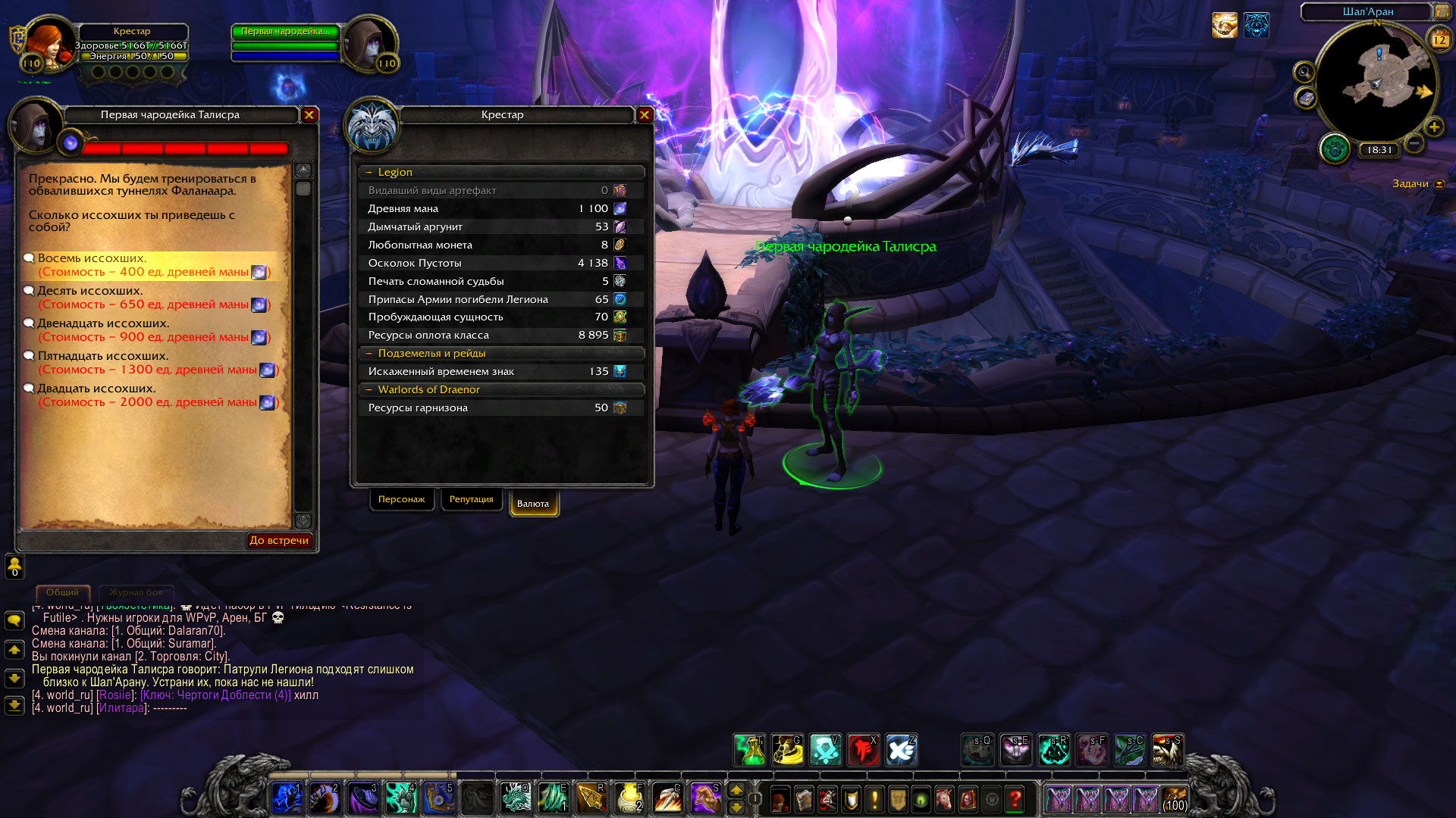 Здравствуйте! Чтобы тренировка иссохщих была доступна, у вас должна быть локалка https://ru.wowhead.com/quest=43943 |