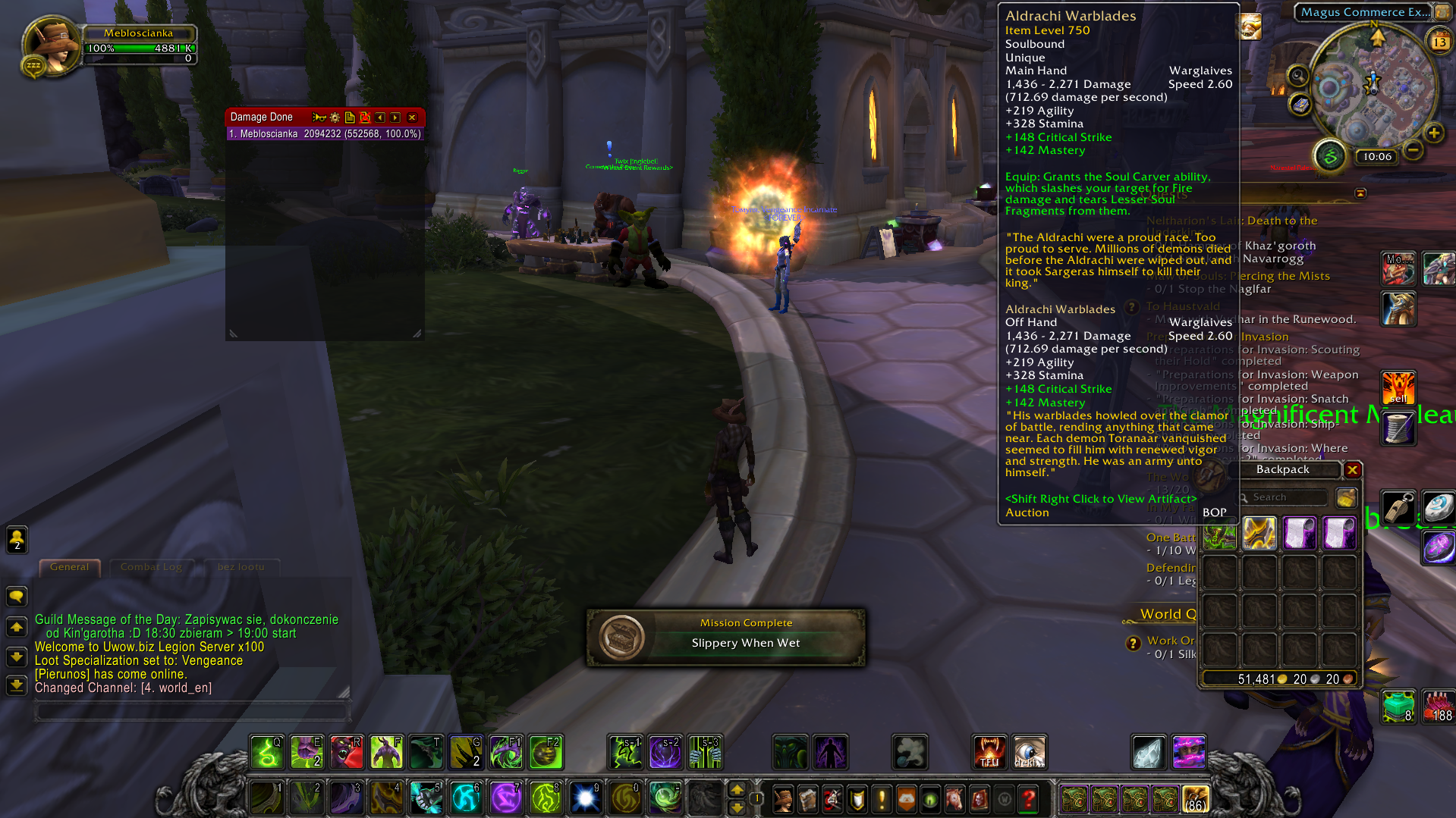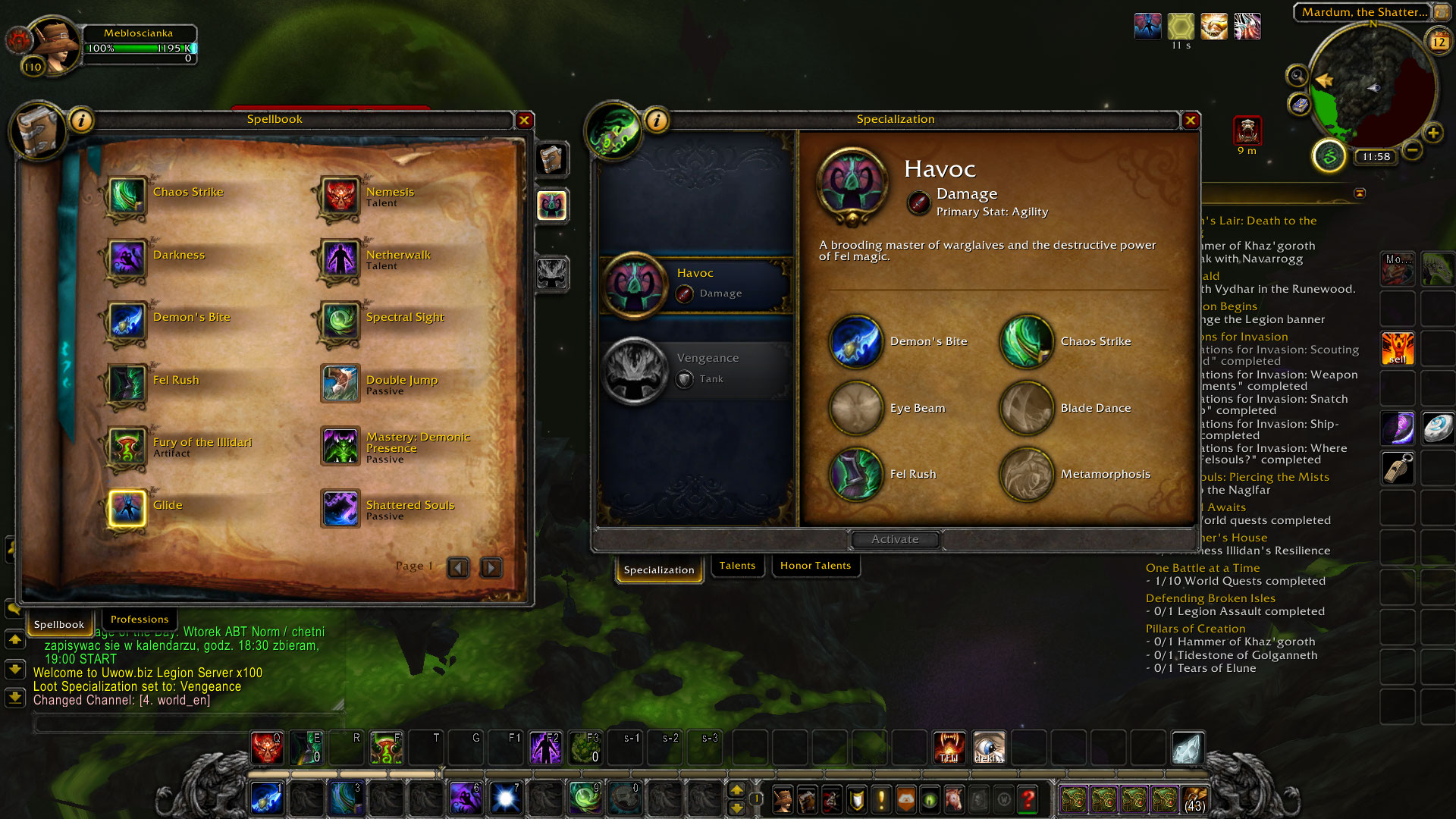 | Description | To beguin with i was doing soryline in stormeheim. I got a quest to kill some mobs while flying on a dragon then he flew me somewhere where he throwms me off and it gives me a parachute. I didnt land on the ground i fell through the textures and kept falling till i died. I couldn't relese spirit even if the time run out so i decided to go on the page and unstuck myself. I tried to do it quick so i went there and clicked it imidietly. When i loged on i relized i was in starting location for demon hunters. I hearstoned my way out of there but when i looked on my hotbar i was missing some spells but still had my artefact weapons. I atempted to do the dh starting zone to get my spells back so i switched to dps spec beacuse on the start i was supposed to be in one. I went through the quests and in the way i got stuck in a cave in one of the quests (there is a screen). So i unstuck myself again to start. Did the rest of the quests and i think in the quest where you choose betwen havoc and vengence whenever i chose vengence i got the animation when you first obtain you havoc artefact weapon. I think then i lost my vengence artefact weapon beacuse i was looking for it in the inventory. I finished the whole starting zone. Still didnt have my weapon. When i got to dalaran i ot the artefact weapon quest so i did it and got the weapon back it was basic version 750ilvl i dont know what happened with artifact power i tought i havent got i either but when i checked now to take screens ap was back but relics still gone. I dont know if it is important but i had 945 iron relic, 940 arcane and 930 fel one. After finishing the starting zone i also was missing some spells it was Sigil of Flame on the Vengence spec and Blade Dance on the Havoc spec but they came back 1 day after i reported a bug insade the game so i think it was admins that made it come back. Summarizing the whole thing I ustucked my boosted (first char created) dh to starting zone, lost spells, did the starting zone, still was lacking some spells and relics in artefact weapon i chose spec for in quests and to this day im lacking those relics. I gave you some screens of me while questing in this starting zone, how the skills were missing, me before the bug and how the weapon i got from quests after this happened looks like. I would really like to get my relics back. | ||||