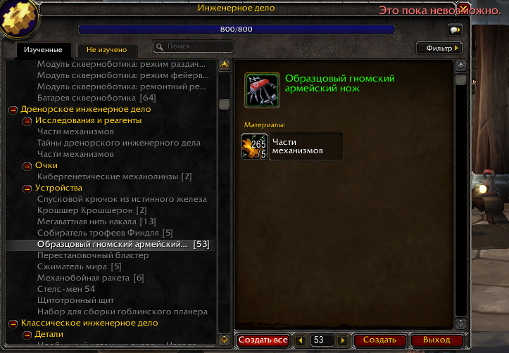 | Description | Не могу создать образцовый гномский армейский нож https://ru.wowhead.com/item=109253/%D0%BE%D0%B1%D1%80%D0%B0%D0%B7%D1%86%D0%BE%D0%B2%D1%8B%D0%B9-%D0%B3%D0%BD%D0%BE%D0%BC%D1%81%D0%BA%D0%B8%D0%B9-%D0%B0%D1%80%D0%BC%D0%B5%D0%B9%D1%81%D0%BA%D0%B8%D0%B9-%D0%BD%D0%BE%D0%B6 Пишет "пока невозможно" Обучен инженерному делу Дренора и Легиона. Ларек в гарнизоне стоит. Остальные предметы, которым обучен, могу создавать | ||||