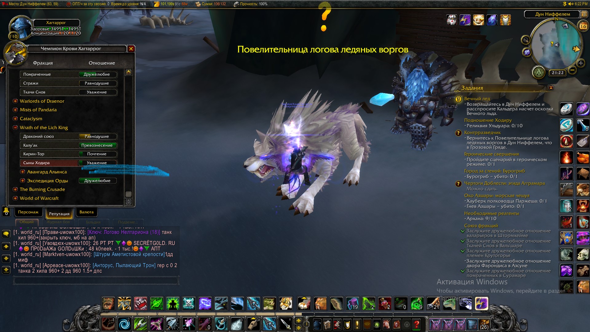 Привет. Фракция изначально враждебная, для взаимодействия нужно снять птицу "Противник". При желании потом птицу можно будет поставить обратно и снова снять . Полетчика исправили, работает нормально. Рекомендация - фармить или вечный лед (если исправили) или реликвии Ульдуара (работало и раньше). WoWScrnShot_031721_064201.jpg (569,821 bytes) WoWScrnShot_031721_064148.jpg (467,630 bytes) WoWScrnShot_031721_064139.jpg (408,828 bytes) WoWScrnShot_031721_064044.jpg (487,640 bytes) WoWScrnShot_031721_064024.jpg (471,602 bytes) |