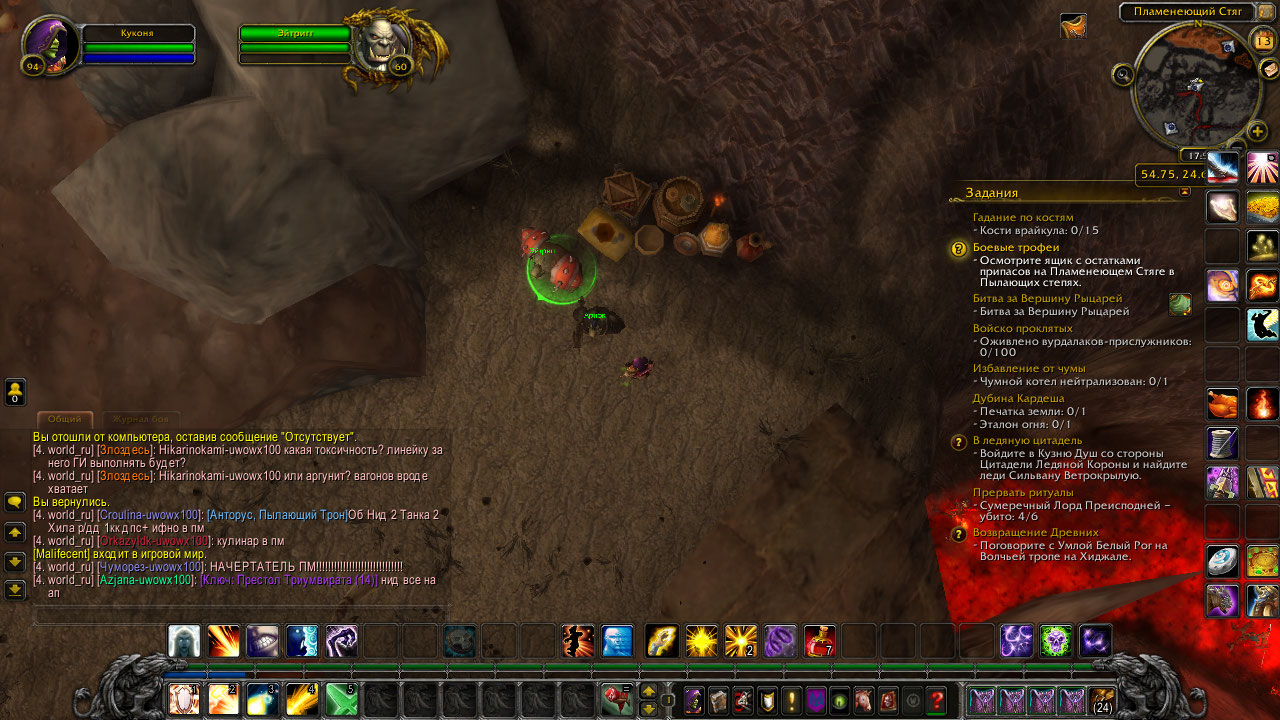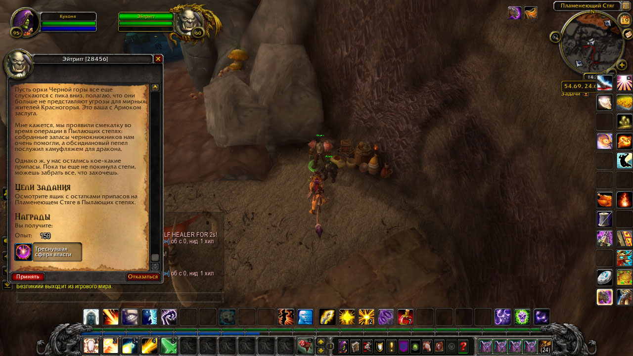 Заселю Орде, вам пока могу предложить сбегать в лагерь Альянса на юге и сдать квест там