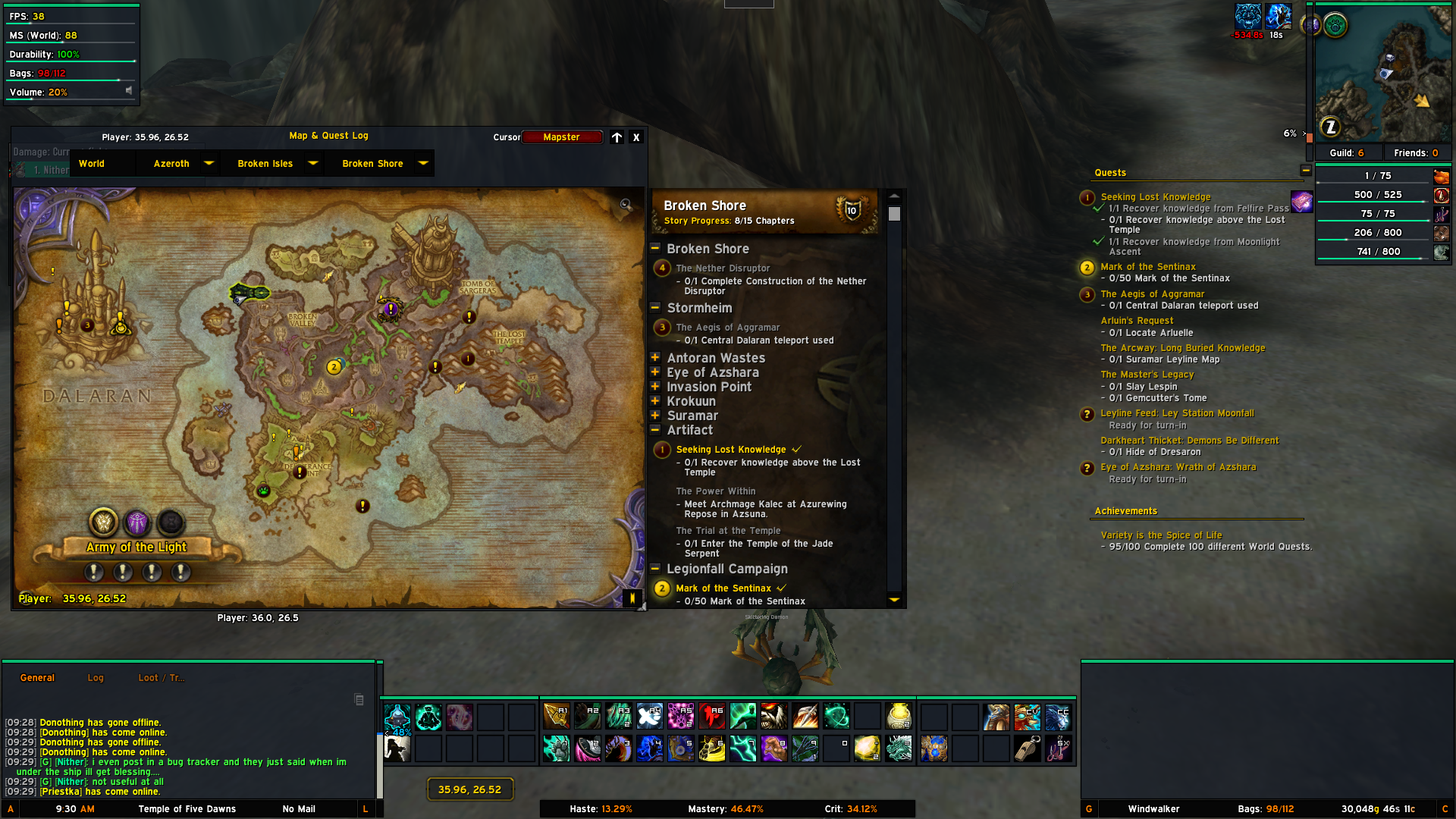 | Description | 1st. I was doing artifact scenario with my Paladin when server crash. The next day when i login a could not continue because on Stage 1 i must click on Hippogryph who will send me to Brokesn Shore but he is missing (i will upload screenshot). 2nd. What is drop rate of [Stonehide leather sample] quest item. I skin many beast and im almost max skinning level and still dont get the quest. 3. [Mark of Sentinax] quest -> When i go under Legion Ship i cant use [Sentinax Beacons] | ||||