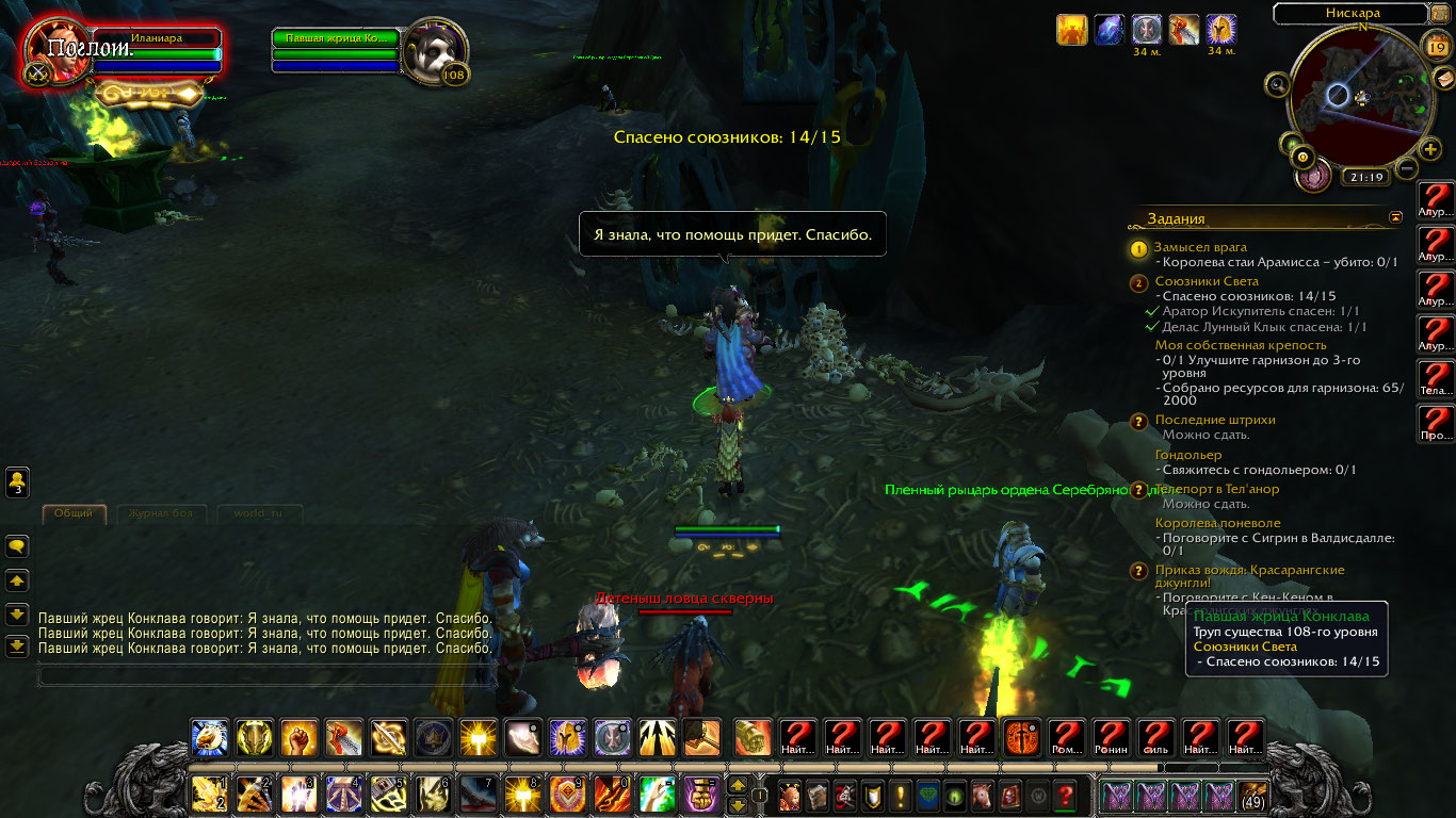 | Description | В квесте "Союзники света" юзаются почему-то только трупы жрецов, но никак не живые и также подсвечивающие паладины Серебряной длани. Хотя по идее я должна спасать именно паладинов в первую очередь. | ||||