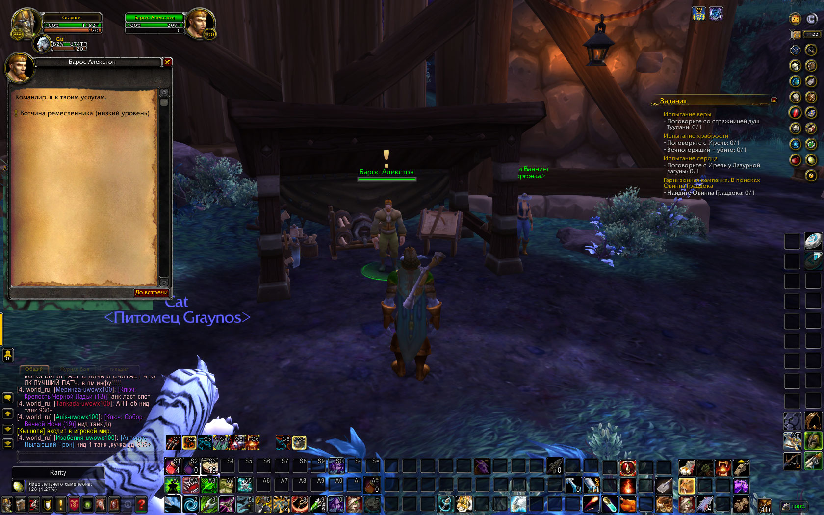 Его нет именно на этом персонаже (Graynos) скорее всего из за того что он был перенесен с другого сервера (не с вашего). И сегодня я удалил гарнизон, исправил перса, удалил кеш, выключил все аддоны, и все тоже самое, после постройки гарнизона мараад пропадает, аддон Wholly показывает что квесты на постройку казарм и другие уже сделаны, а вот команда .q s говорит что не сделаны. Скажите пожалуйста можно обнулить весь дренор будто этого перса там не было, я б прошел квест темный портал, и все было б норм., на других персах работает. |
