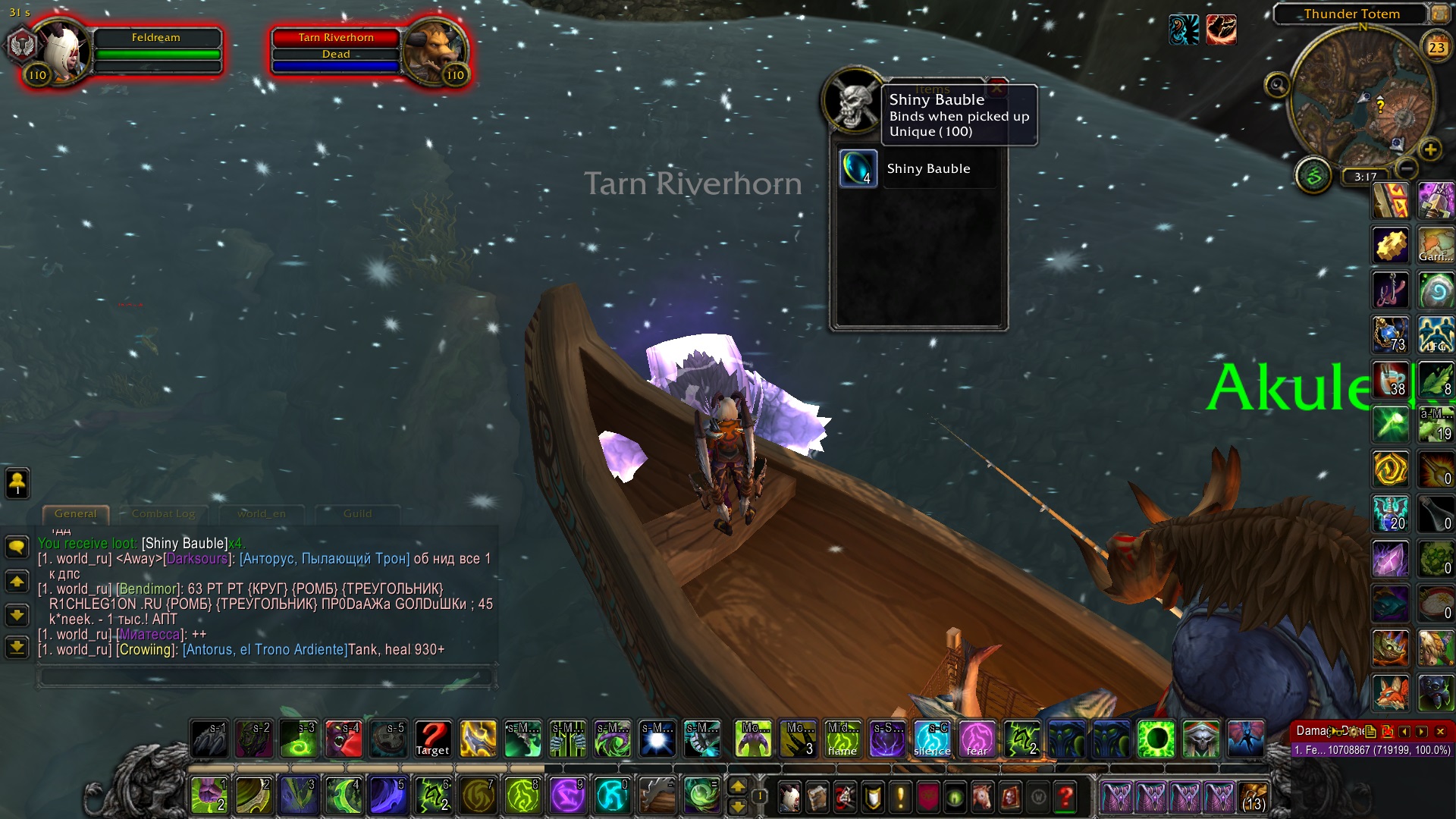 | Description | RE: http://tracker.legionbugs.com/view.php?id=14214 So today is the day when https://www.wowhead.com/npc=120457/akule-riverhorn is spawn again after a whole rotation. I like to say the my point on the previous report is still valid. There is 0% https://www.wowhead.com/item=146960/ancient-totem-fragment drop rate / fishing rate under the aura of https://www.wowhead.com/spell=239673/somethings-fishy. Even if you use https://www.wowhead.com/item=146966/water-totem-figurine and kill the mini boss https://www.wowhead.com/npc=120453/tarn-riverhorn for 100% boost drop rate then it drops the wrong loot https://www.wowhead.com/item=6529/shiny-bauble that only drops for Stormheim | ||||