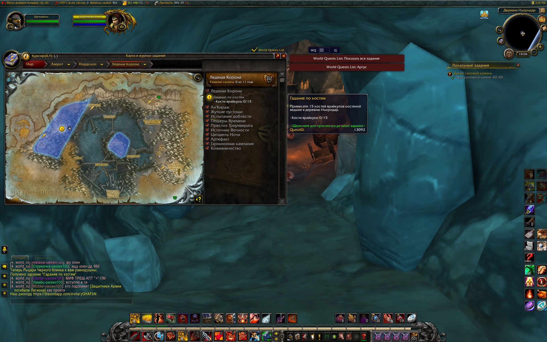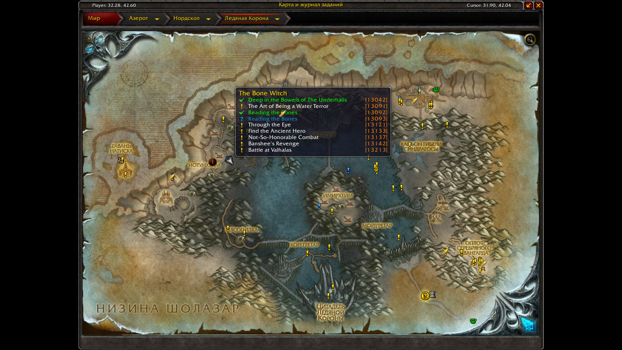 | Summary | 0014319: Квест https://ru.wowhead.com/quest=13093/гадание-по-костям в Ледяной короне | ||||