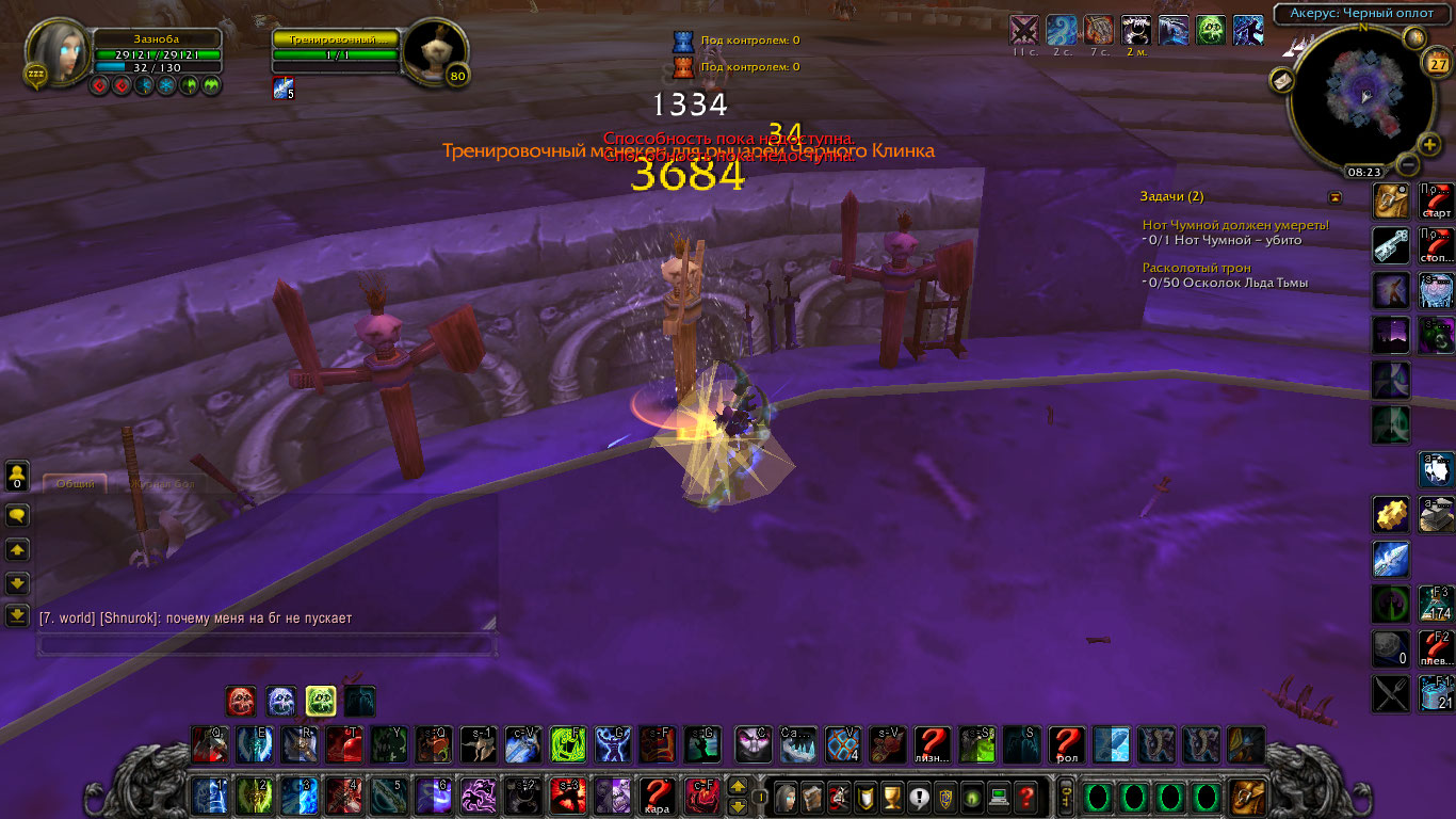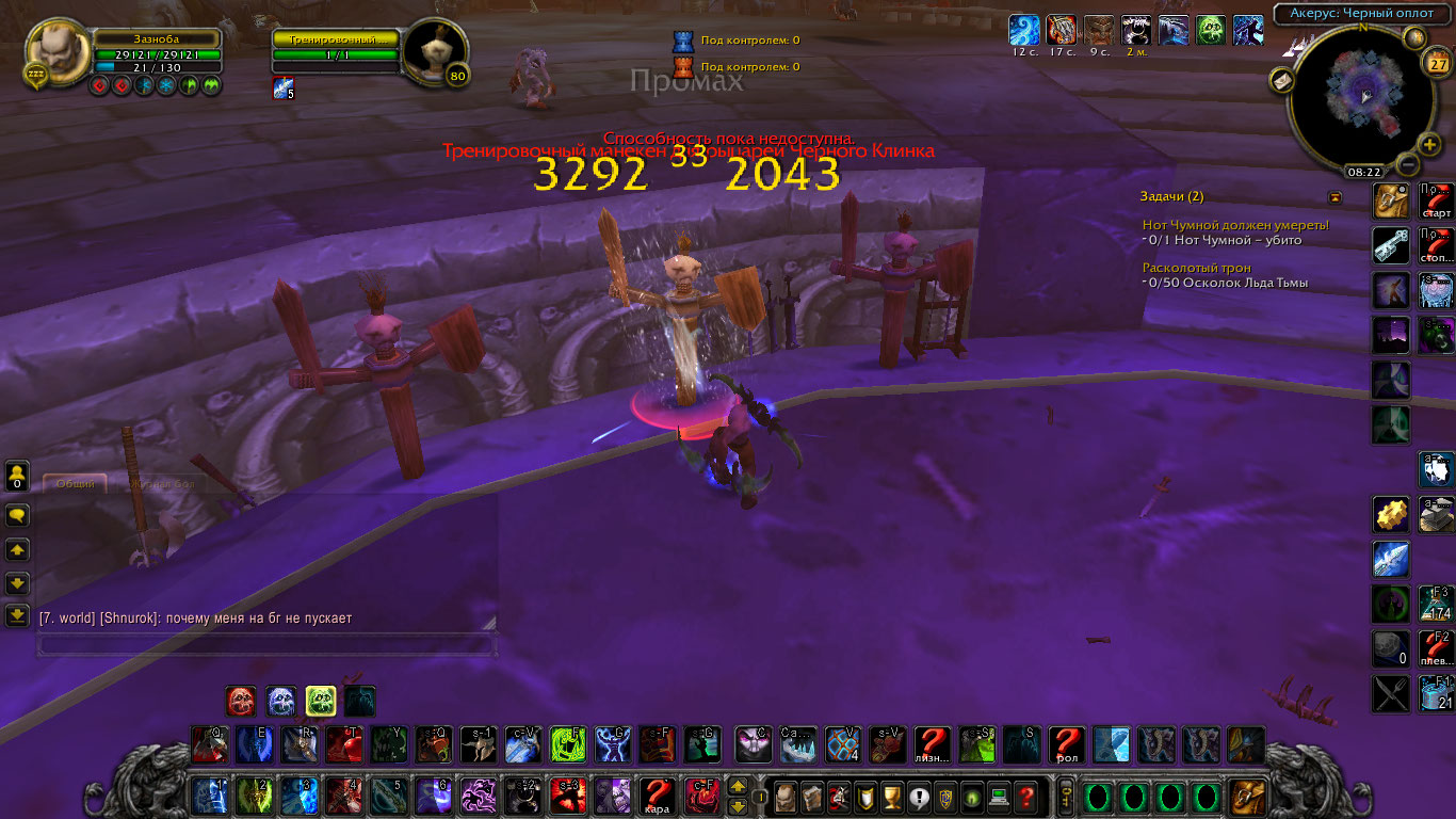| Description | Удары у фроста, которые должны бить с 2х рук при наличии парного оружия и таланта "Угроза Тассариана" могут ударить как положено,ударить с одной руки или не нанести урона вообще, при этом руны или рп на удары расходуются. Неважно кого бить и где бить. Проблема пропадает если перед ударом скинуть свой таргет и потом снова его же взять в цель и ударить. Тестил на другом сервере, все было замечательно. Сразу говорю кеш я чистил,чара в лк исправлял,клиент меня 2 раза,аддонов нету вообще как и каких то патчей меняющих что то в игре,пробовал разное оружие,даже чарки на оружии менял.Скрины: 1 и 2 моя ветка 3. В книге заклинаний стоит галочка на показ всех уровней заклинаний,но она не работает, на других чарах смотрел все ок. В общем персонаж какой то поломанный. На остальных скринах показаны удары когда все хорошо, когда персонаж бьет только с одной руки или удар не наносит урона вообще. Ледяным ударом бил всегда под прок таланта "Машина для Убийств" для большей наглядности. | ||||