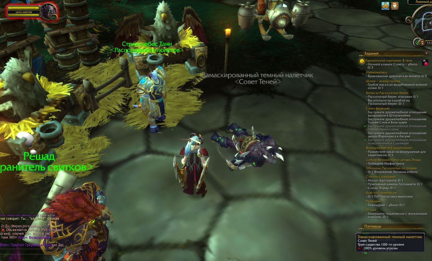 | Description | Банально не достоверный перевод и скрипты и как итог квест не рабочий, хотя по видео https://www.youtube.com/watch?v=bCQjSrwsVes видно что именно их нужно валить, НИПы стоят на тех же местах но обозначаются совсем по иному "Замаскированный темный налетчик" хотя по квесту должен быть "ночной клинок совета", скрин прилагаю. | ||||