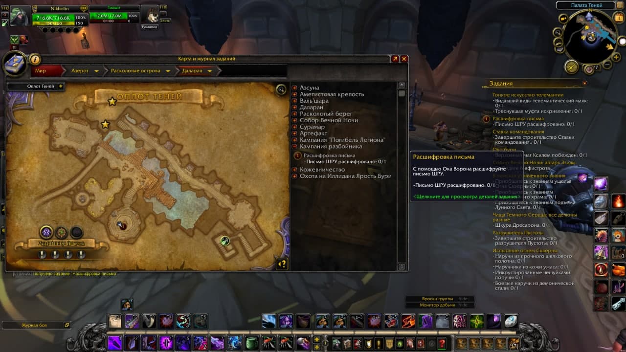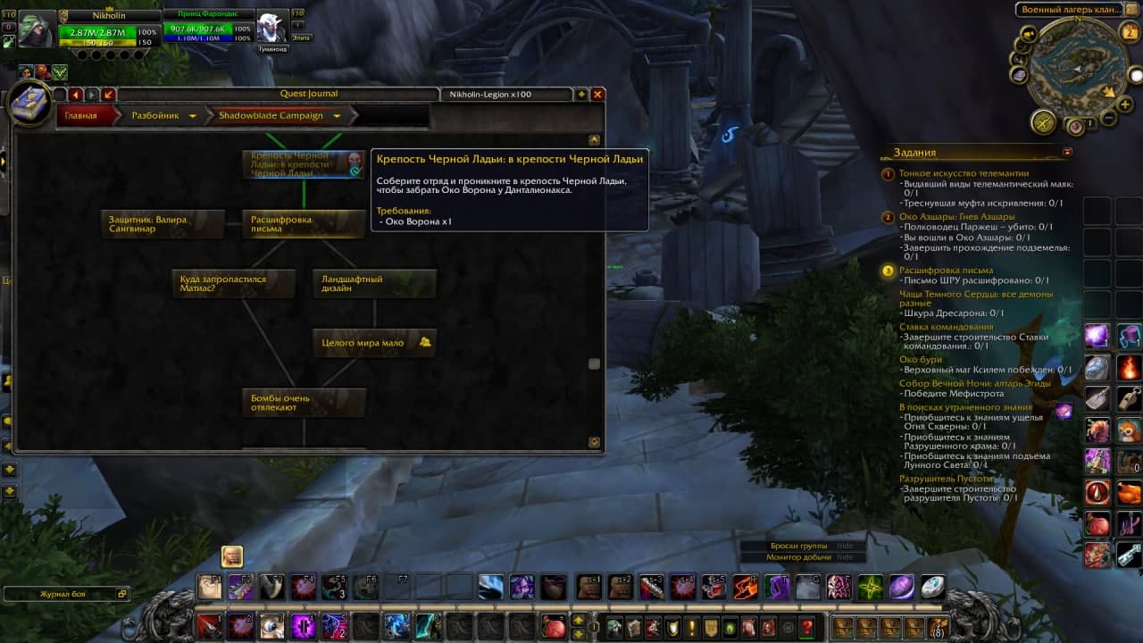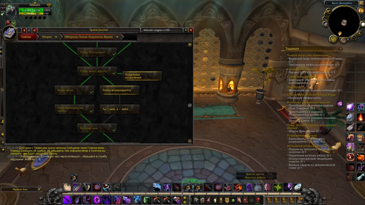 Здравствуйте, по порядку: 1. Инвентарь не был полный во время взятия квеста? Также попробуйте почистить кеш исправить персонажа 2. Я вам приложу аддон, пришлите скриншот нужной цепочки BtWQuestsLegion.zip (2,572,338 bytes) |