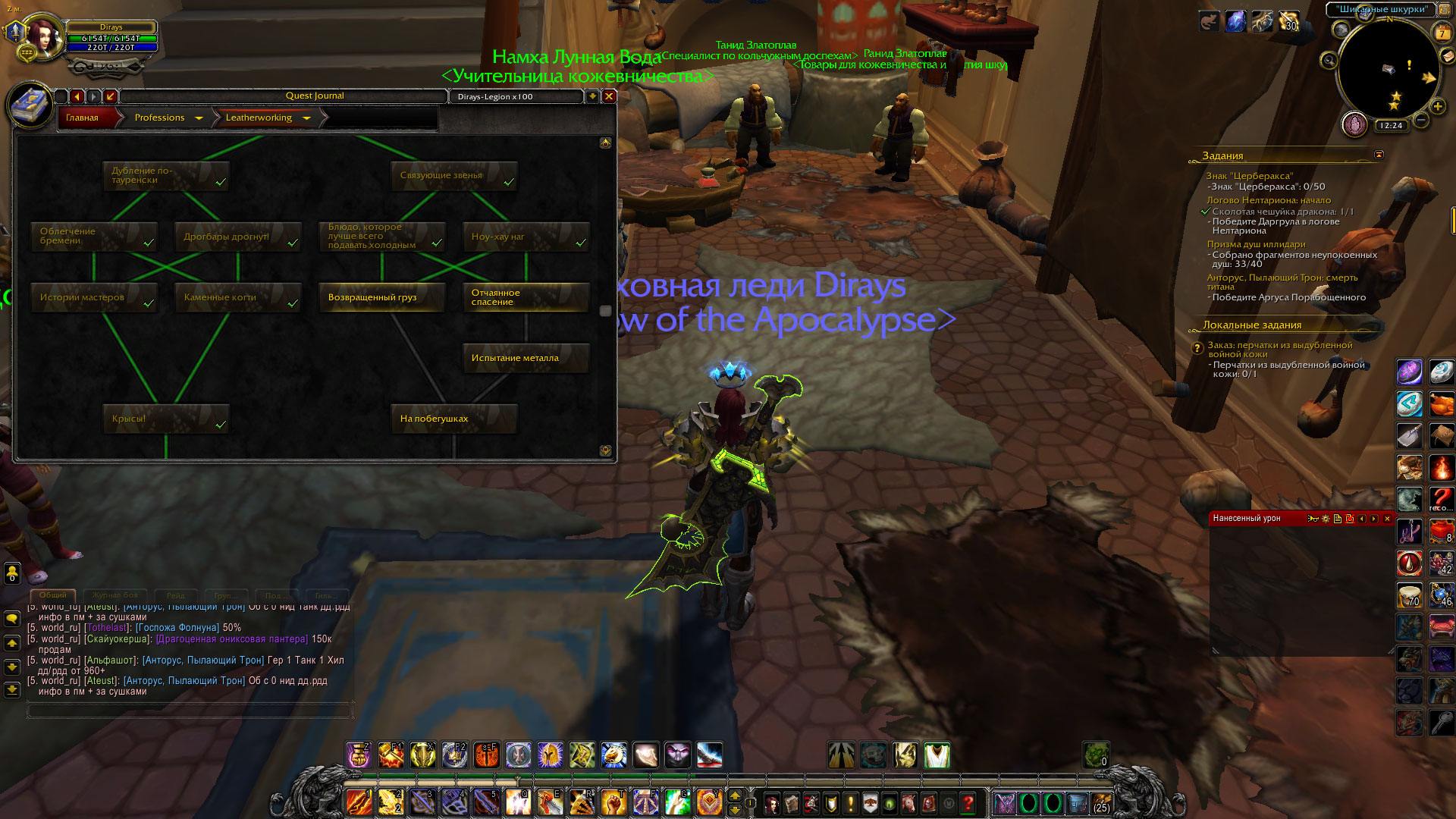 А проблем с профессией Кожевничество у Вас нет? Точнее с цепочкой квестов этой профессии. Если все имеет место быть откройте окно аддона BtwQuests и сделайте несколько скриншотов окна так чтобы вся последовательность квестов попала на скрины. Скрины сюда. |