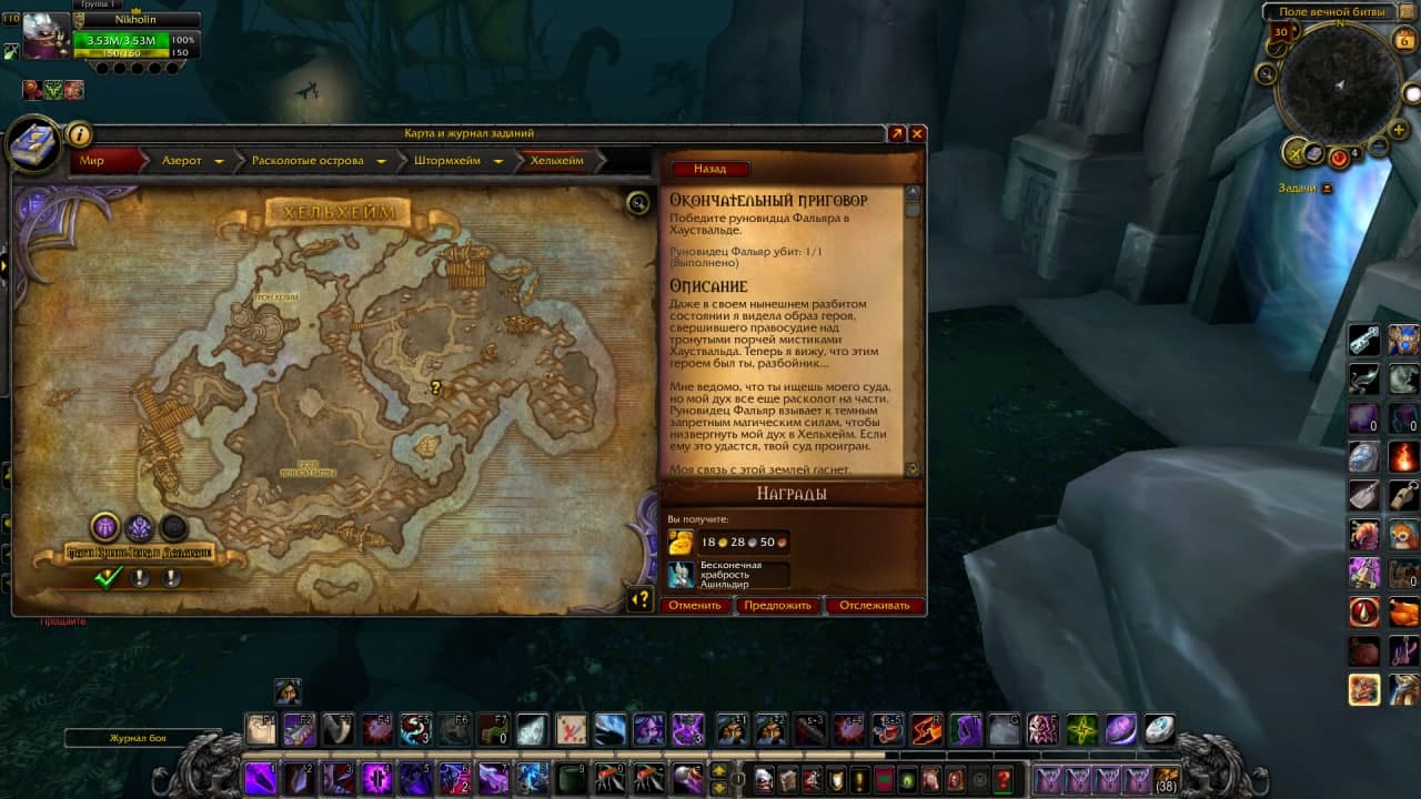 Ну, маркер на карте показывает Хельхейм, в описании не сказано куда идти и кому сдавать. Я загуглил - хельхейм в испытании доблести, ну ок, погнали. Благодарю за помощь. |
